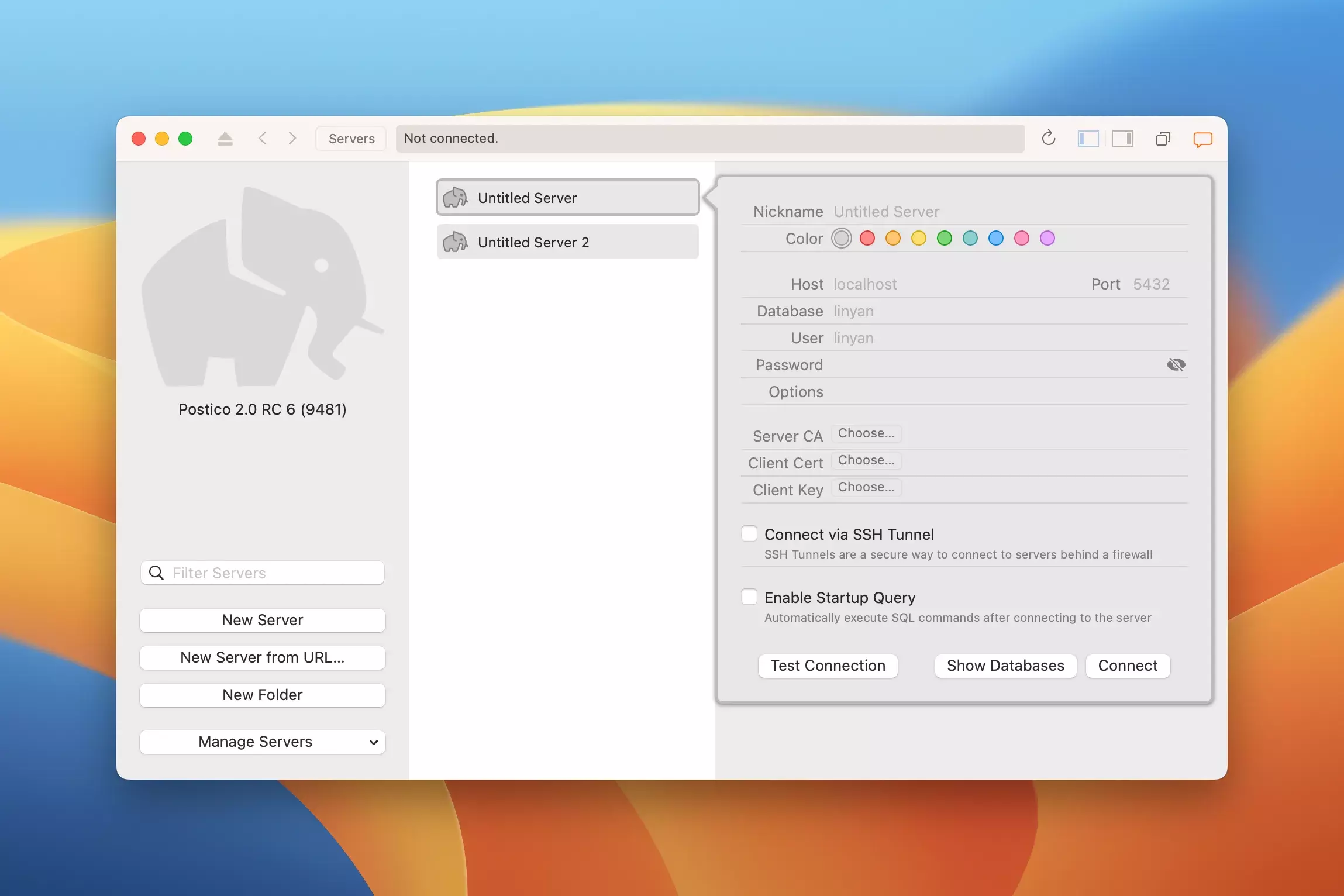 Postico 使用 SSL 加密来保护与数据库的通信。它还支持 GSSAPI 和 SSPI 身份验证,确保只有授权用户才能访问数据库。