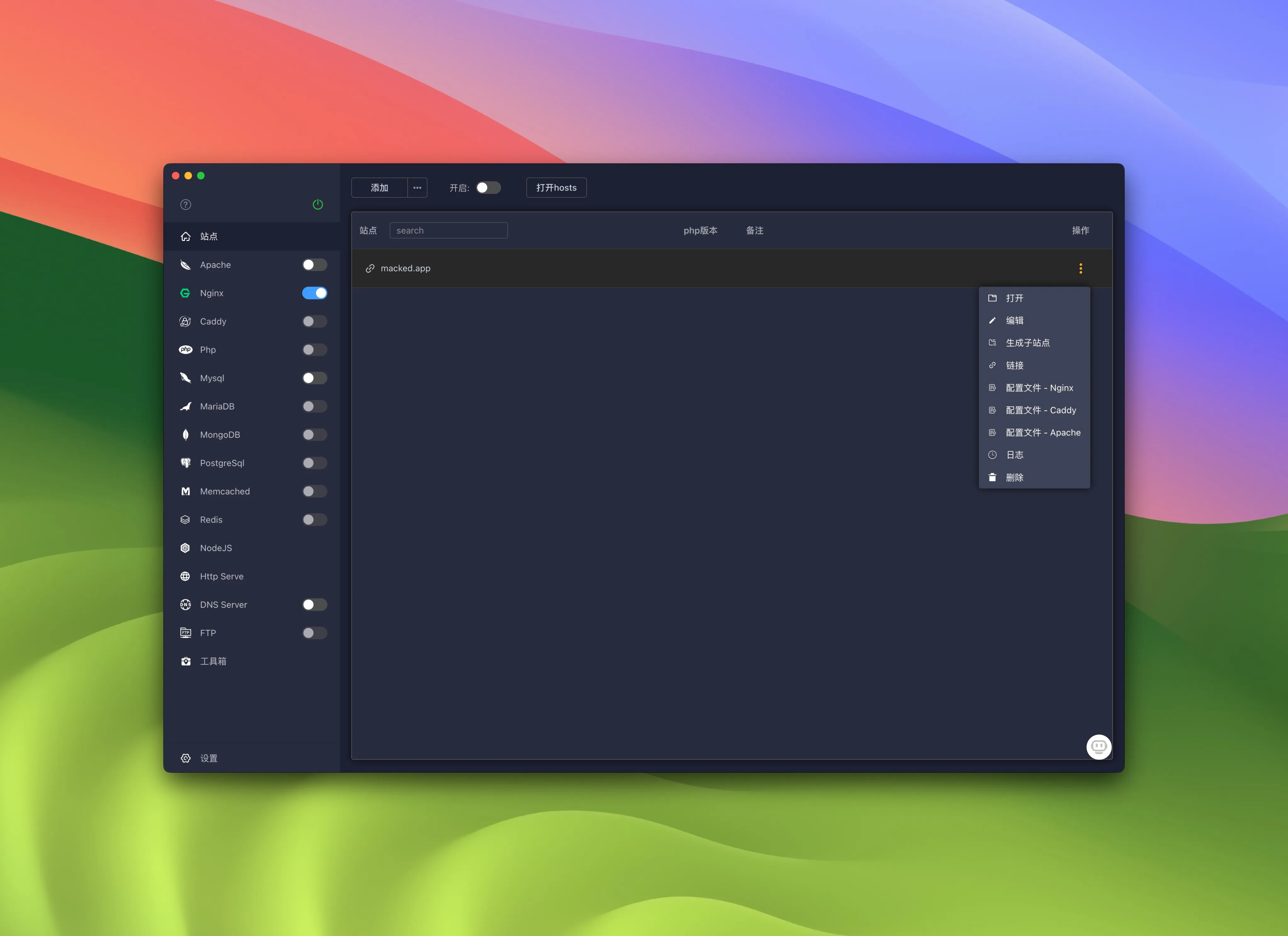 PhpWebStudy是一个强大的 PHP 开发环境软件,为 macOS 用户提供一体化解决方案,涵盖了开发网络应用所需的各种技术和工具。它集成了诸如 PHP、MySQL、Caddy、Nginx、Apache、MariaDB 等服务,在与多数网络应用程序和框架兼容的同时保证性能出色且灵活组合功能。其特点包括高速原生静态二进制运行方式以确保闪电般快速反馈及深度优化从而有效面对问题;支持PHP多版本并可轻松安装扩展,无缝切换NodeJS版本;自动生成SSL证书来简化站点配置,并提供实用功能如编辑系统文件或生成自签名 SSL 证书等以增强开发者体验。除此之外还有更多实用工具不断更新完善, 助力用户在macOS上构建稳健高效 的 Web 和 PHP 应用环境。