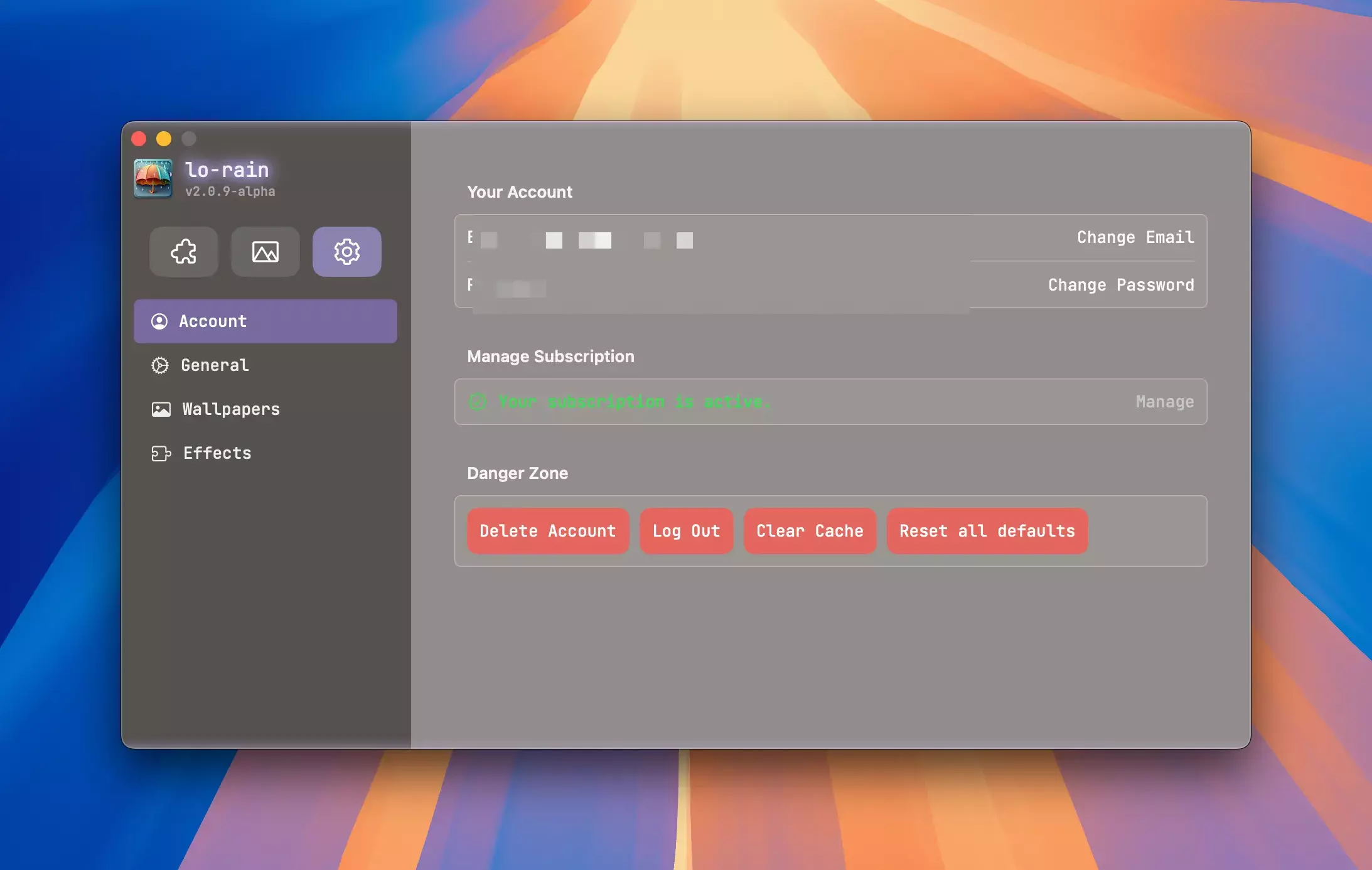 lo-rain是一款原生macOS应用,通过令人惊叹的动态壁纸和桌面效果,转变您的桌面。通过美丽的动画背景和互动功能增强您的工作空间,给您的屏幕带来生命。