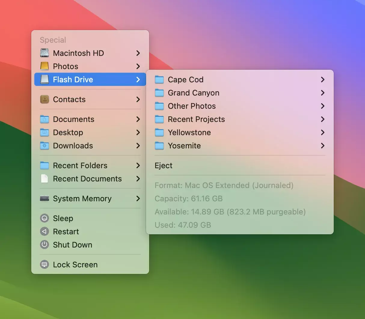 - 特殊菜单:浏览卷宗和常用文件夹以快速打开包含的项目。预览文档,轻松访问最近的文件夹和文件,包内容和联系人。