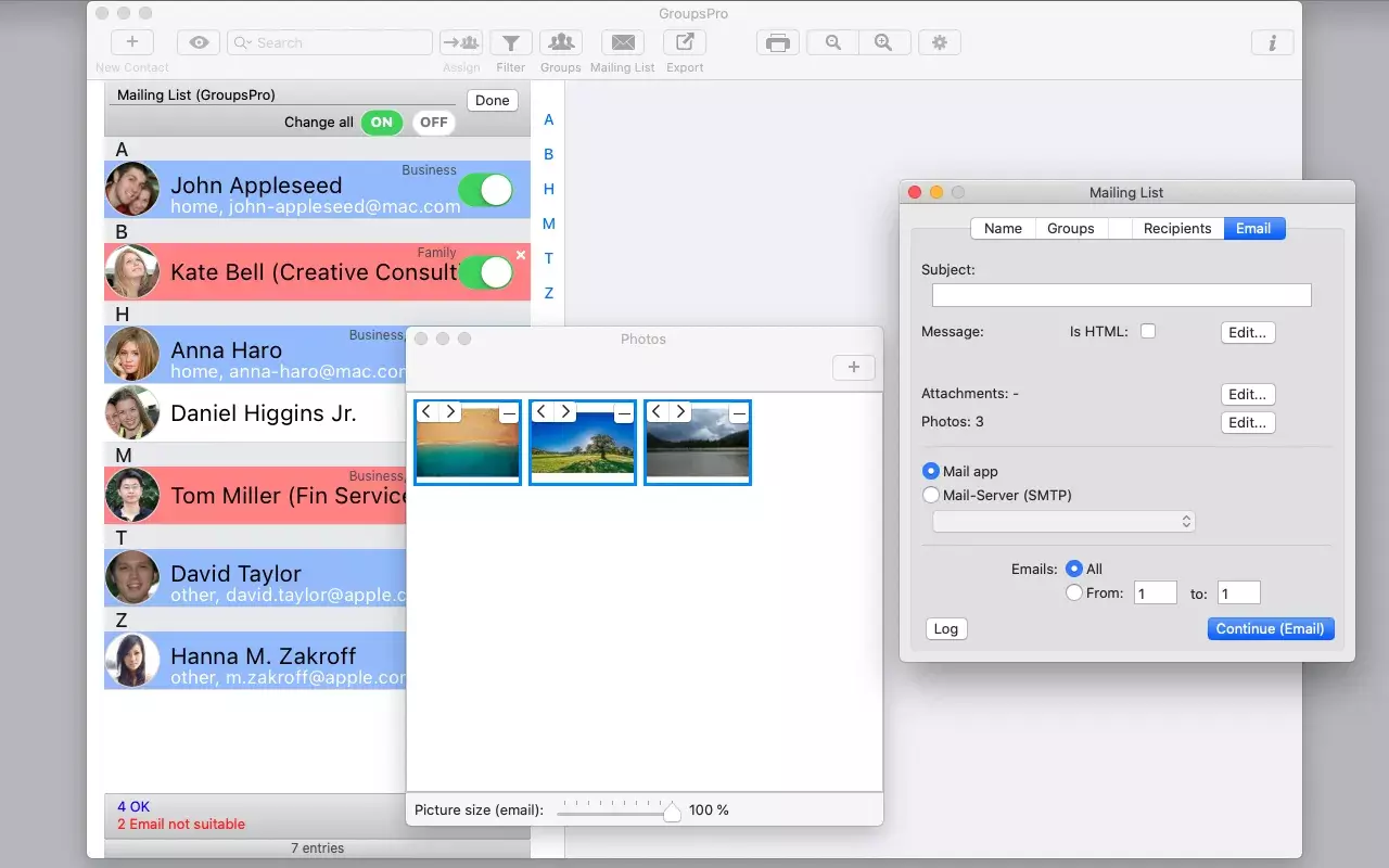 GroupsPro是一款优秀的软件,提供了创建和组织联系人组及邮件列表的最佳解决方案。无论是群组成员还是单独的接收者,都可以轻松管理。