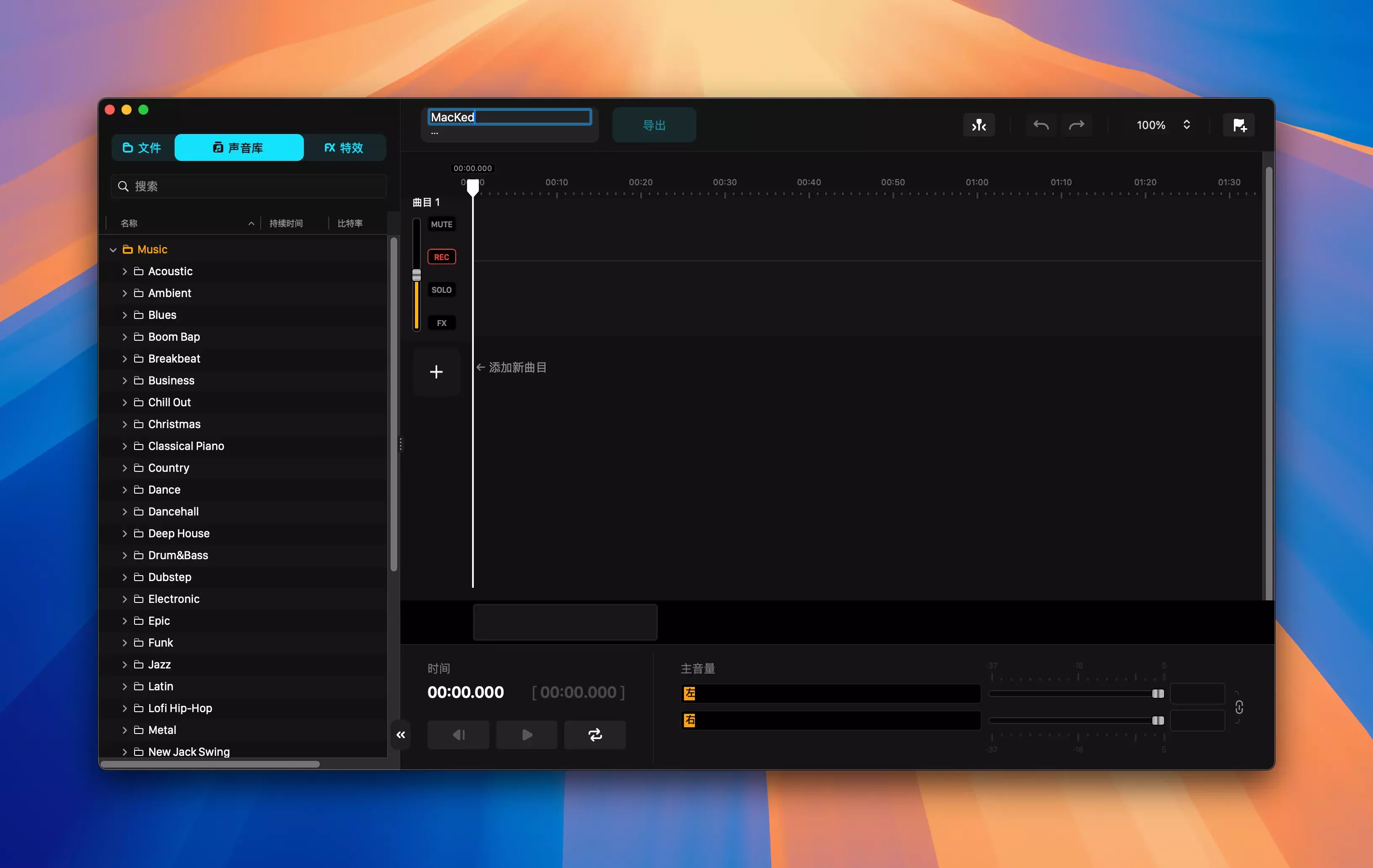 - 声音录制与处理:提供录制、混音和母带制作(声音和节拍或乐器)的功能。