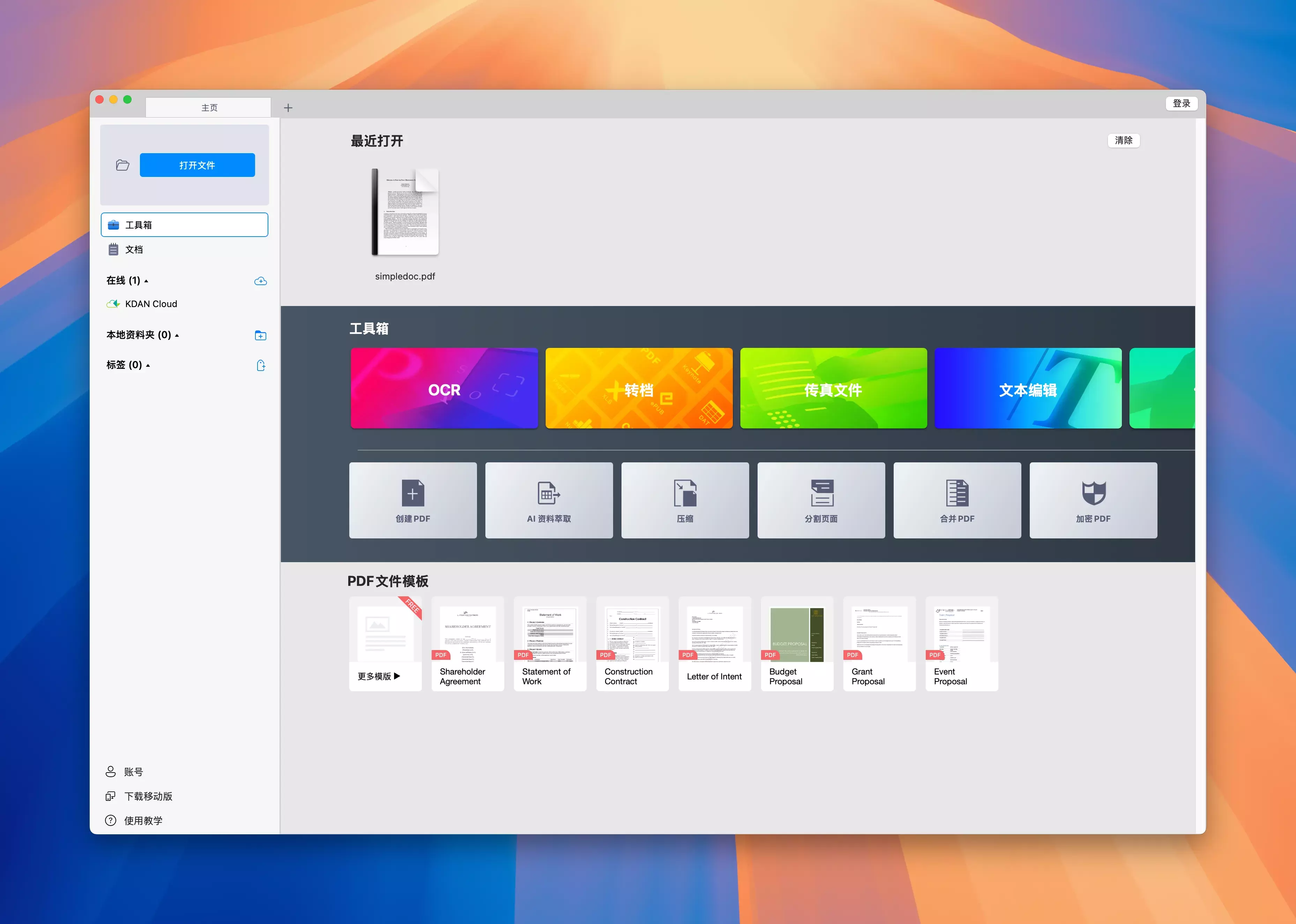 KDAN PDF Reader是一款全面的PDF解决方案,支持编辑、签名、OCR扫描、转换、注释和填写PDF表单。通过创新的人工智能功能,提升文档工作流程的效率。该软件专为Mac、iPhone和iPad设计,深受数百万用户信赖。其主要功能包括直接在PDF中修正文本、转换文件格式、创建可填写的表单、合并和拆分PDF、识别文本、文件管理与共享、保护PDF安全、丰富的注释功能以及多种文件查看选项,充分满足用户在处理PDF文件时的各种需求。