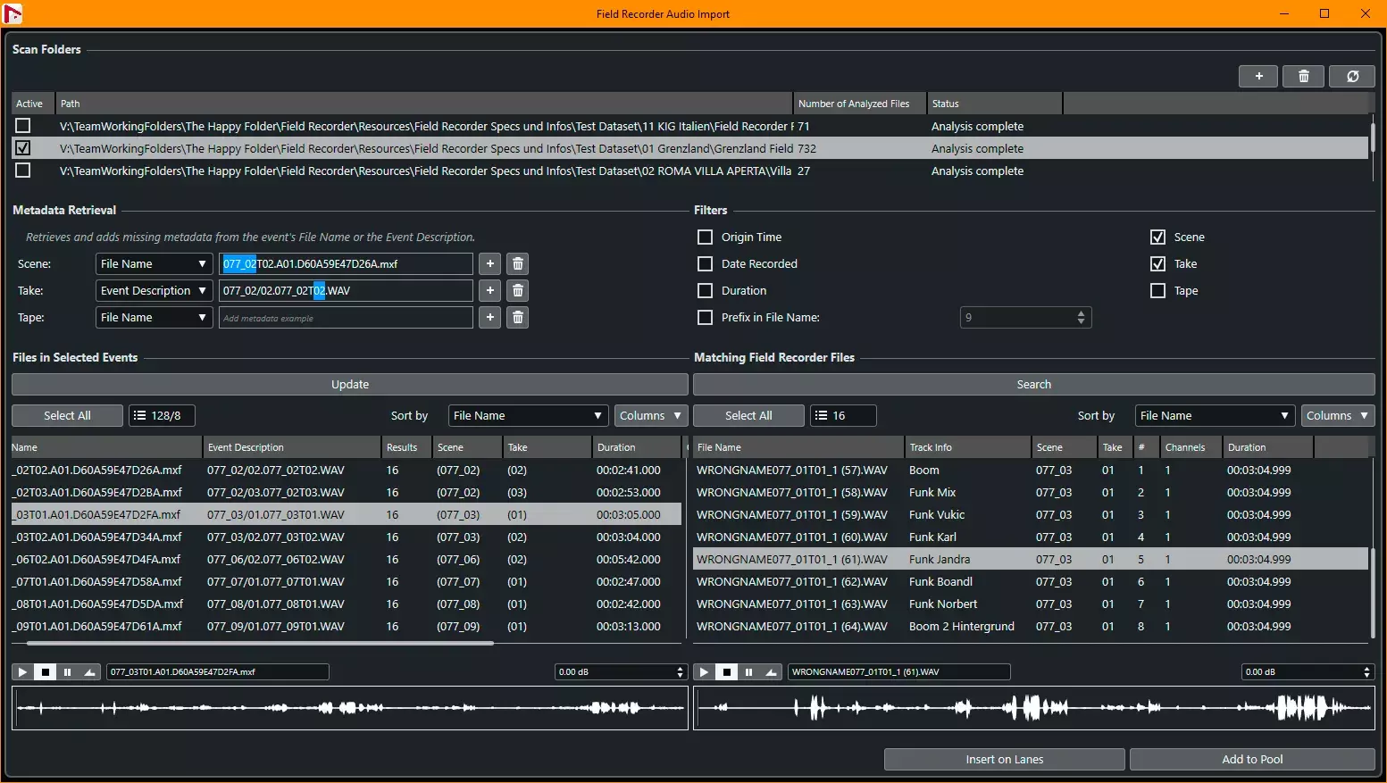 - 现场录音器材音频导入:这一强大的功能允许您搜索与选定事件匹配的现场录音器材音频文件…