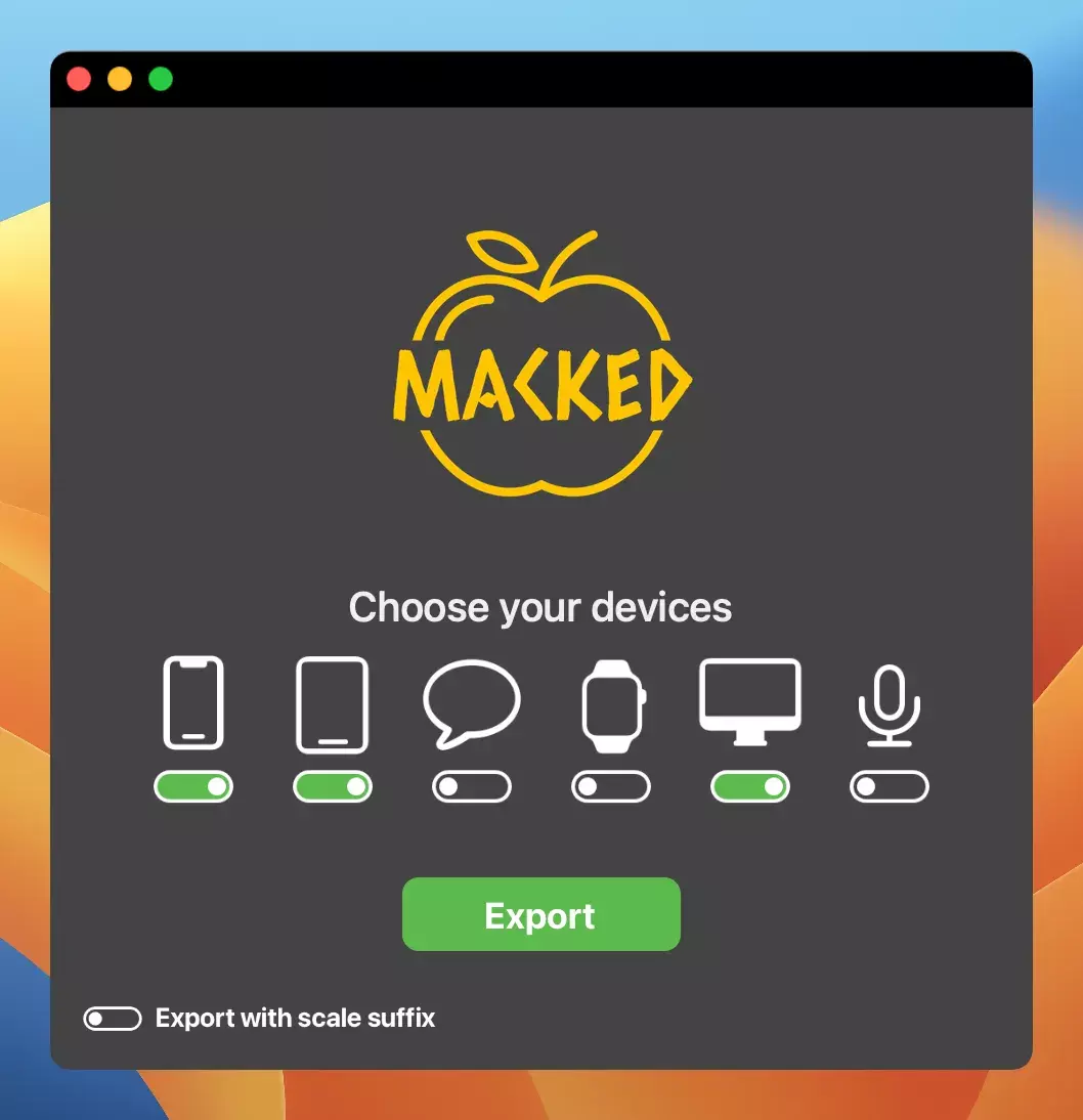 所有的图标将被导出到一个文件夹中,按尺寸命名,并自动转换为PNG格式,随时可用。App Icon Generator 已更新,支持新设备和图标尺寸的当前大小和分辨率要求。此应用的图标就是使用此应用生成的。