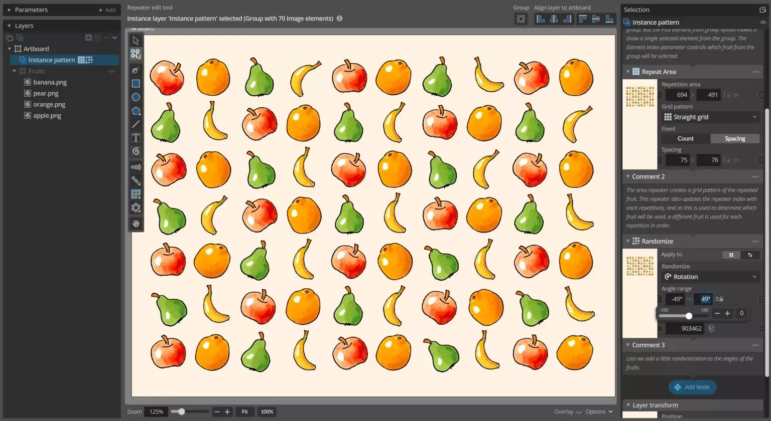 - 非破坏性随机化: 以完全控制的方式替换、重新排序或变换重复元素,实时更新以鼓励逐步测试和调整设计。