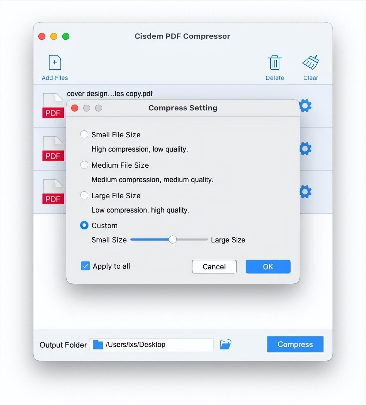 - 节省存储空间: 当存储空间达到限制时,Cisdem PDF Compressor 能够有效地减小 PDF 文件的大小,为用户节省更多存储空间。