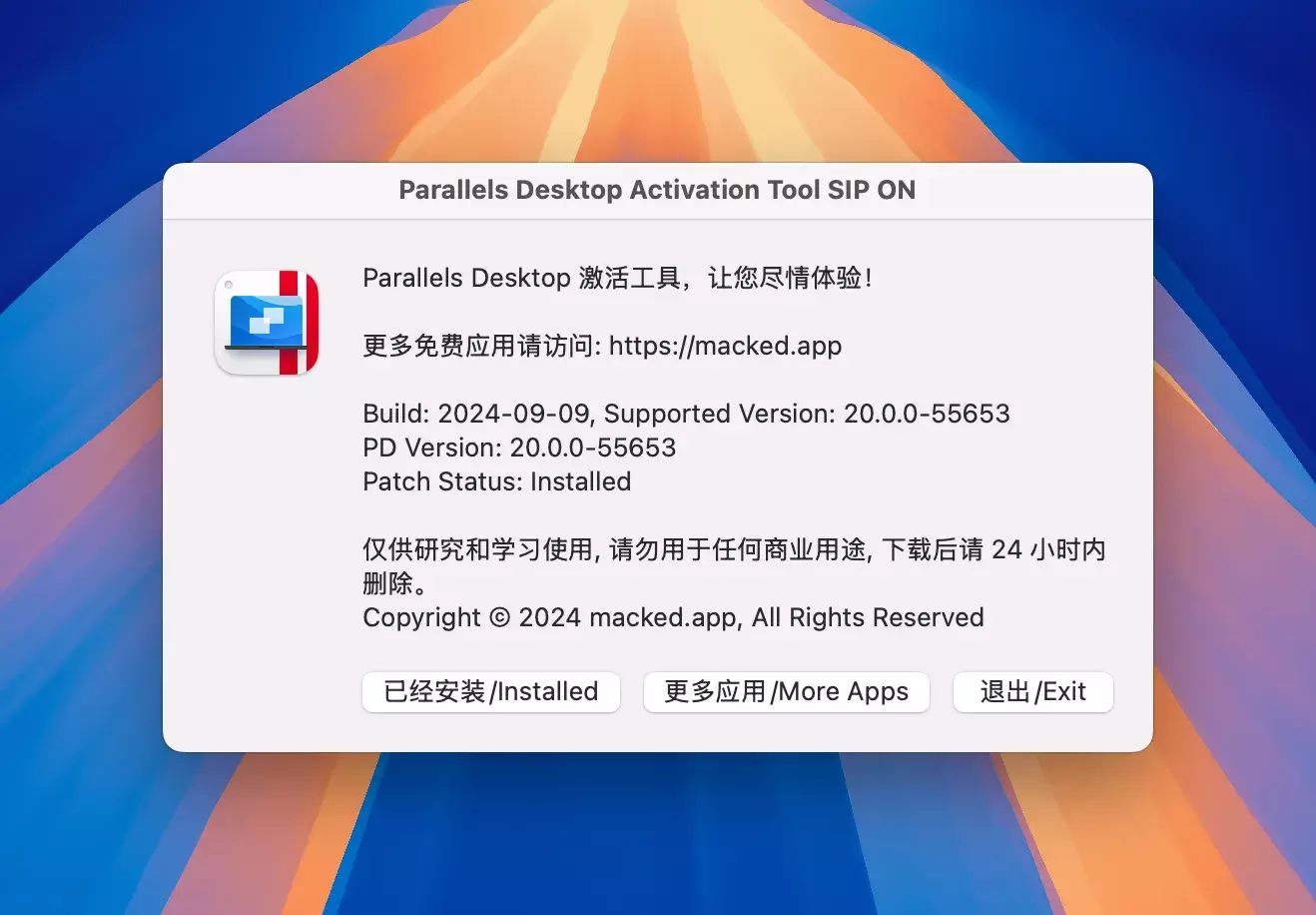 Parallels Desktop 20 20.4.1-55996(修复盗版弹窗/激活工具6.13.0) 破解版 – PD虚拟机破解工具/激活补丁/破解补丁 | 破解工具