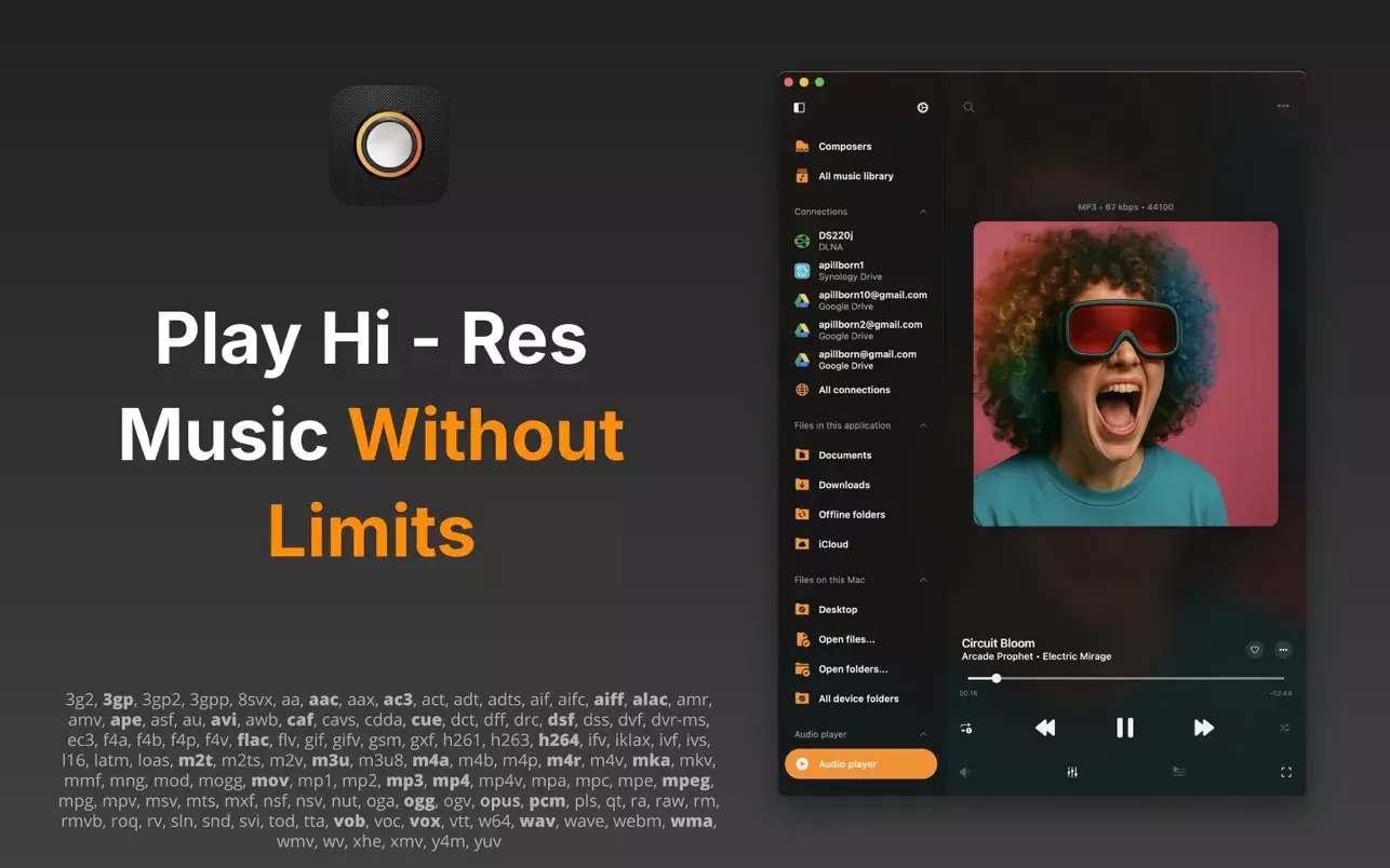 - 支持的音频格式: Flacbox支持AAC、AC3、AIFF、ALAC、DSF、FLAC、M4A、M4V、MKV、MOV、MP3、MP4、MPEG、OGG、OPUS、PCM、WAV、WMA等多种音频格式。
