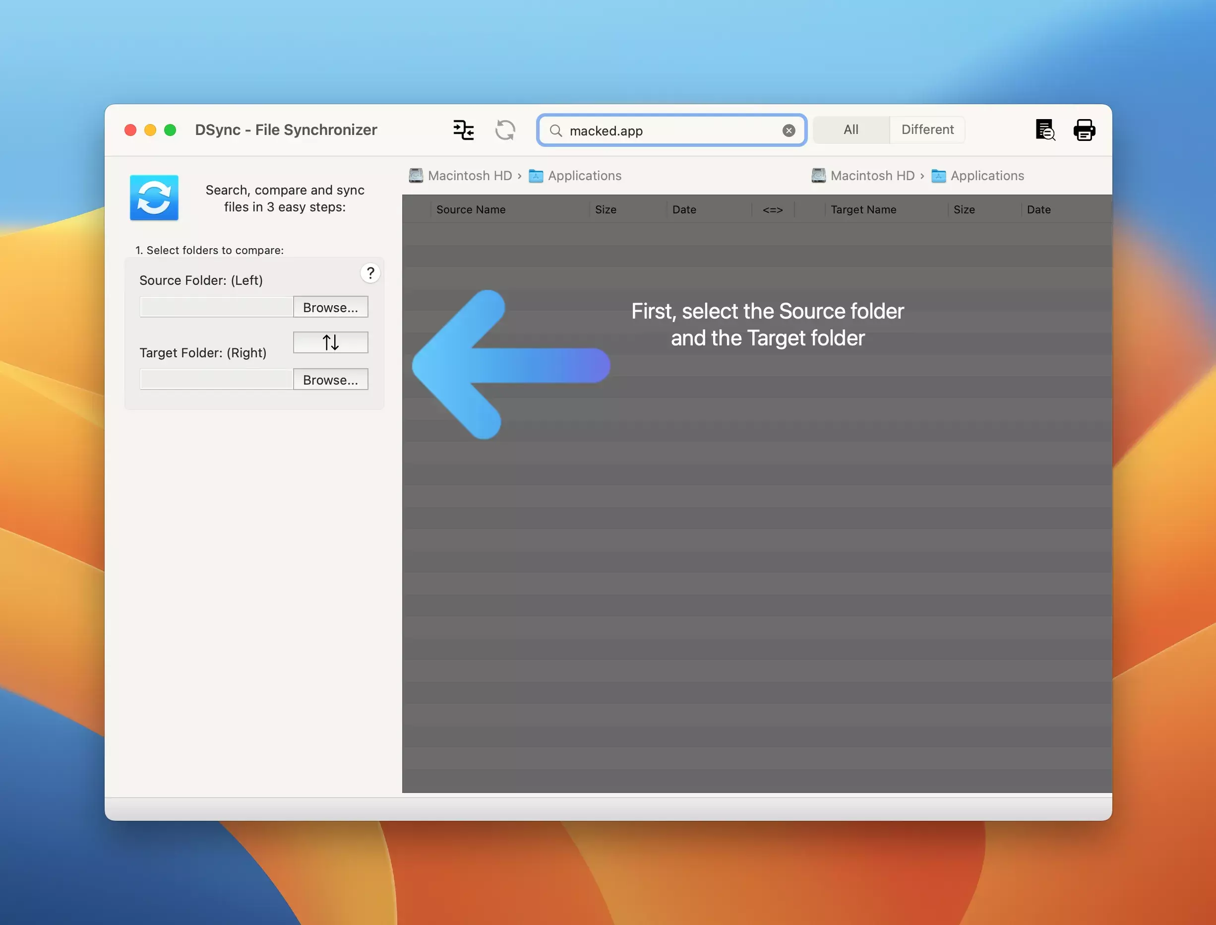 DSync让文件夹同步变得异常简单,只需三个步骤:选择文件夹、比较和同步。