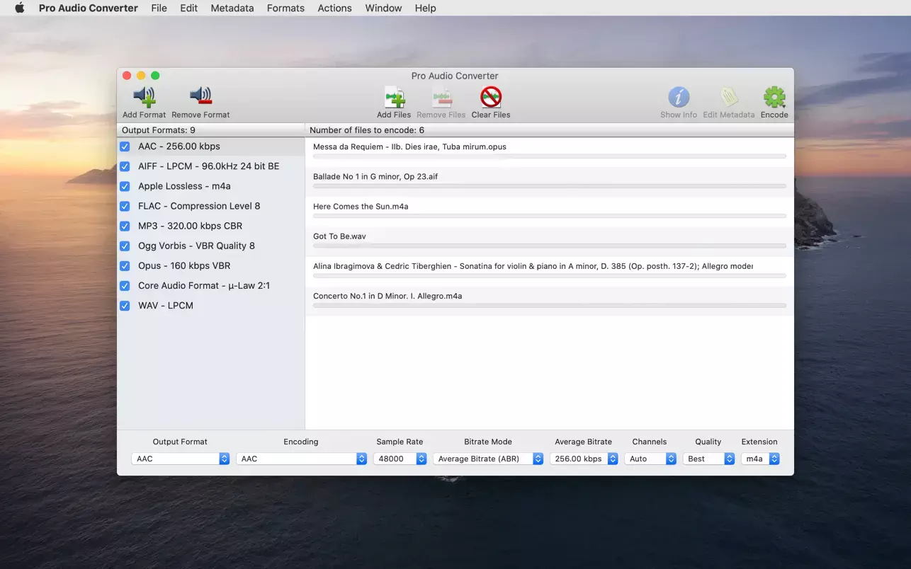 - 多格式支持: Pro Audio Converter 可以读取和写入多种音频格式,包括但不限于 AAC、MP3、FLAC、WAVE 等,涵盖广泛的用户需求。