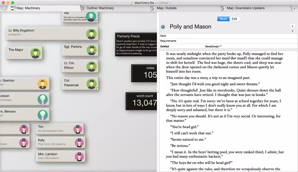 - 用户友好: Storyspace 的设计专注于写作过程,使用户能够轻松添加、链接、修订和重组内容。