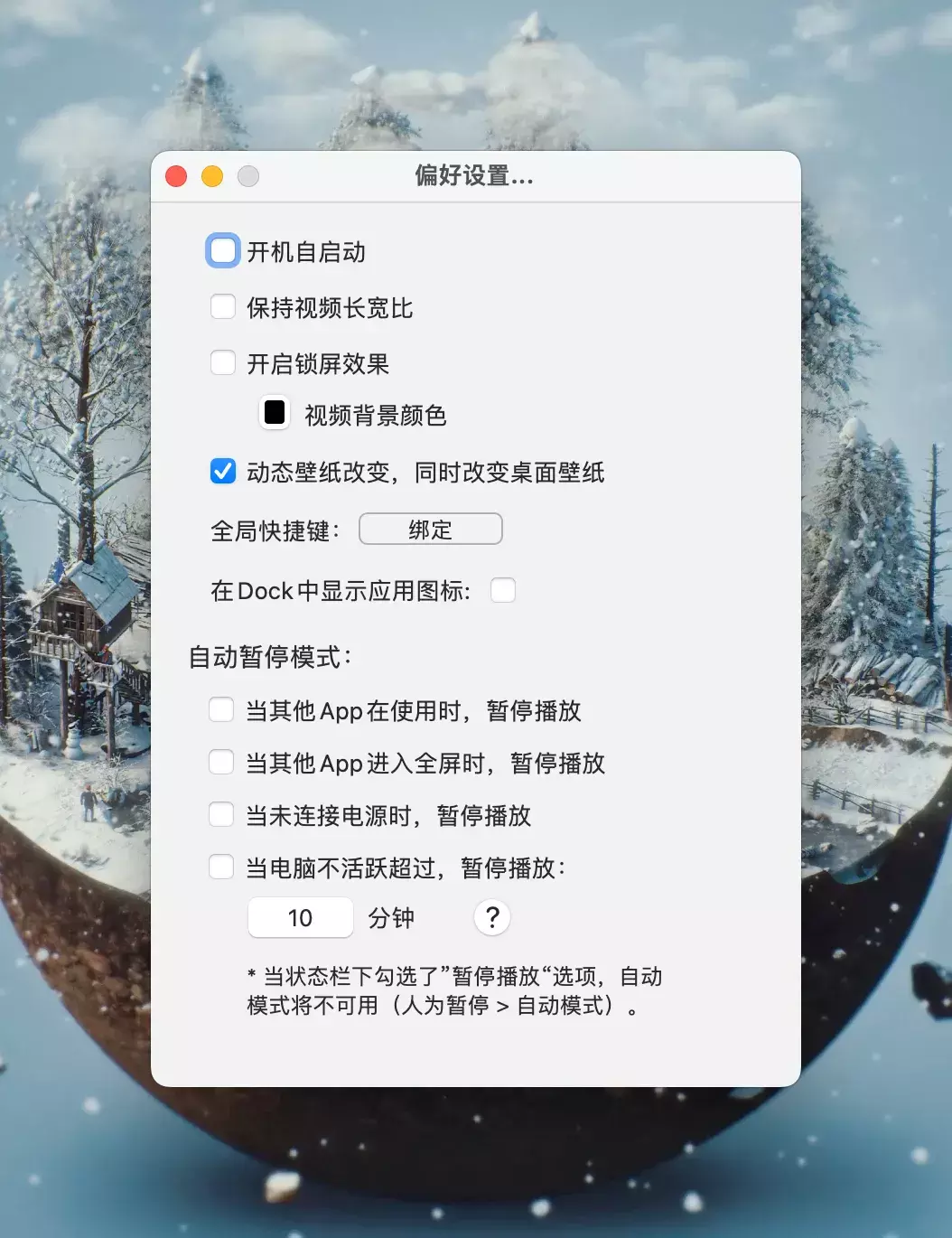 - 支持“全局快捷键”,一键切换壁纸、隐藏桌面图标、显示屏保。