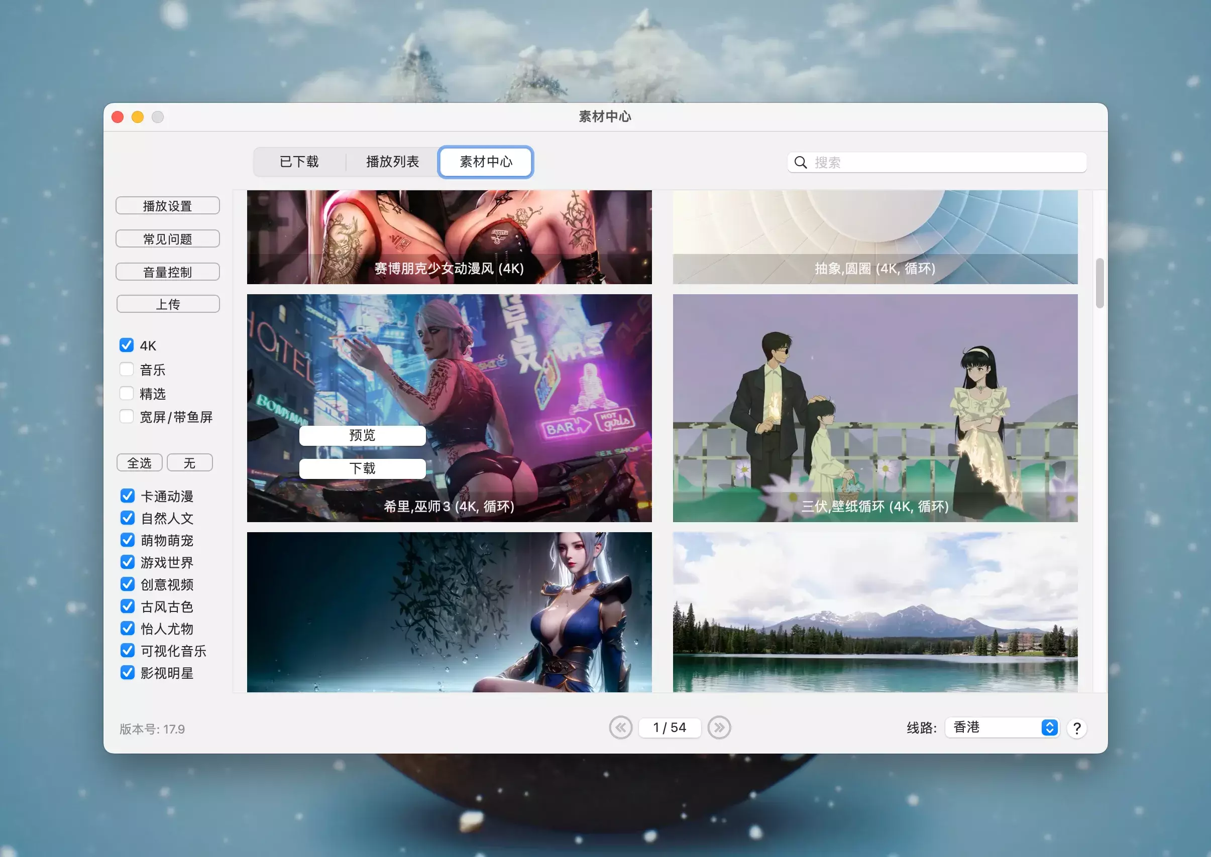 - 视频素材分类:4K超清、卡通动漫、自然人文、萌宠萌物、游戏世界、创意视频、怡人尤物、古风古色、影视明星等等,总有适合你的风格。