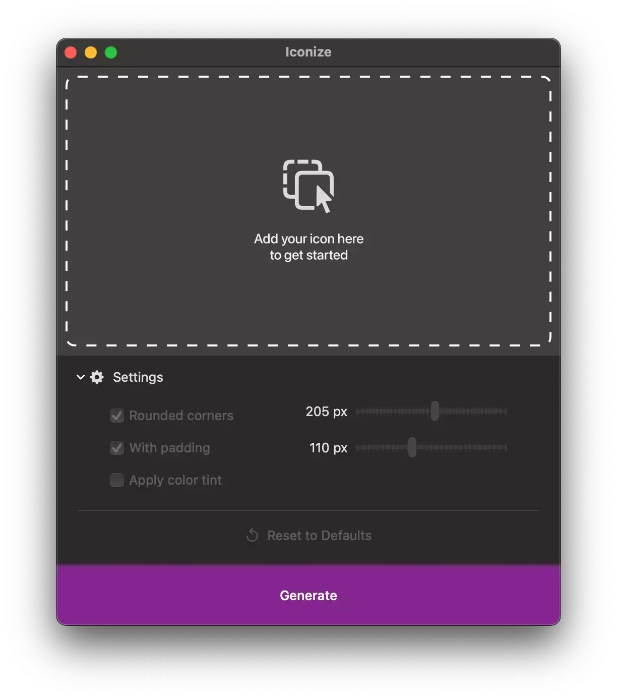 - 易于使用: 用户只需将图标图像拖放至 Iconize,软件将自动处理其余操作,支持任何 Mac 能识别的图像格式。