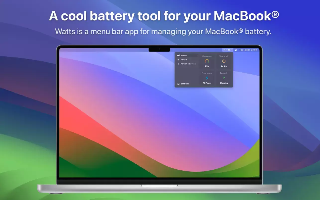 Watts 是一款专为 MacBook 设计的电池管理工具,它提供详细的电池状态信息和健康参数,帮助用户轻松监控和管理自己的电池。该应用坐落于菜单栏,让用户在只需一次点击的情况下即可看到电池状态、健康状况和连接的电源适配器信息。
