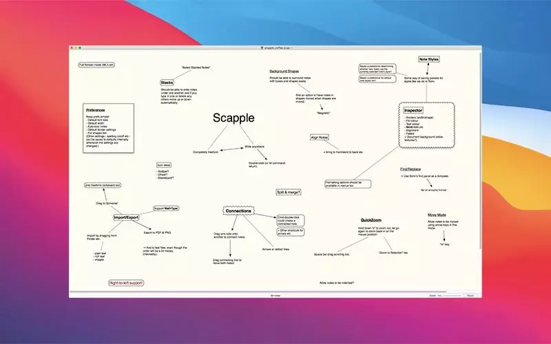 - 无限空间:Scapple的画布大小可以根据需要自由调整,用户可以在无限的画布上创作,不必担心空间不够的问题。