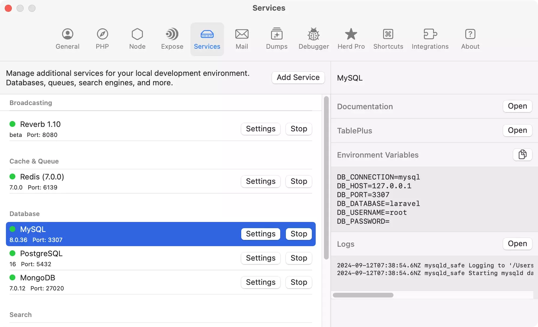 - 服务管理: Herd 可作为本地环境的控制面板,支持与 MySQL、PostgreSQL、Redis 等存储系统的集成,方便管理 Laravel 应用所需的所有服务。