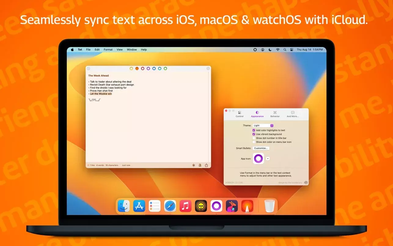 Tot 可供 macOS、iOS 和 watchOS 用户使用,是你理想的文本伴侣!