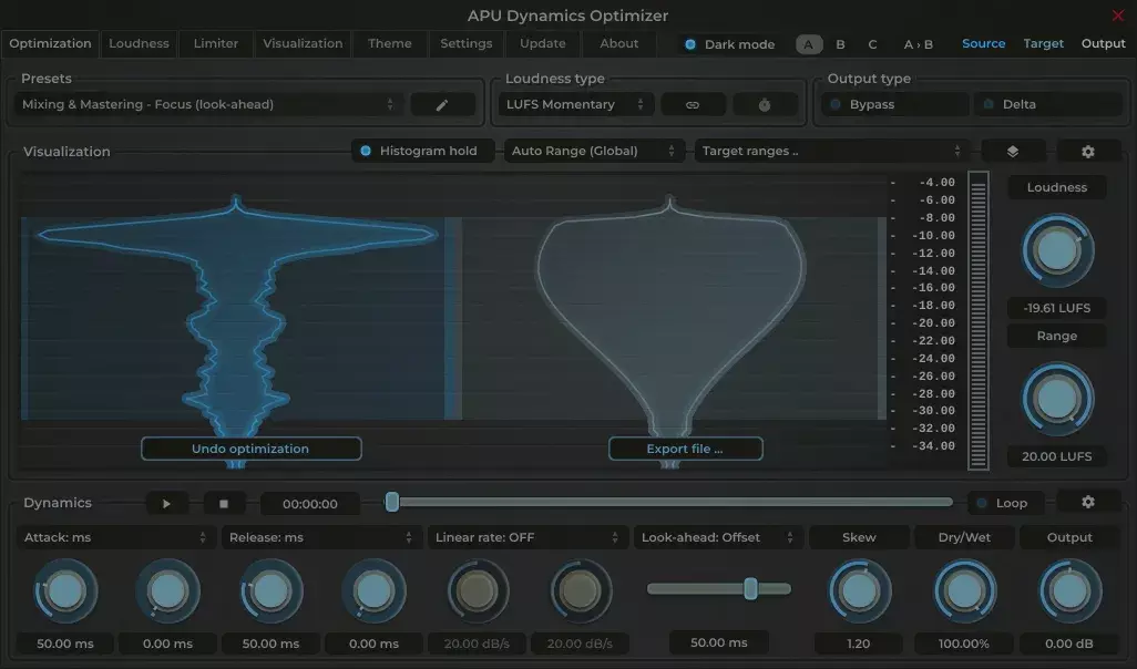 APU Dynamics Optimizer 是一款专为音频动态优化设计的独特软件,提供程序感知的响度优化功能。它通过对整个音频文件进行前期分析,深入了解其动态范围,进而实现更精确的响度控制,帮助用户在调整音频时获得最佳效果。