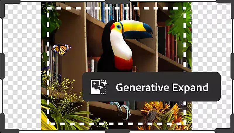 - 快速扩展图像: 用户只需使用“裁剪”工具点击并拖动到图像的边界之外,即可扩展图像,并生成与现有图像融合的新内容,保持高质量的视觉效果。