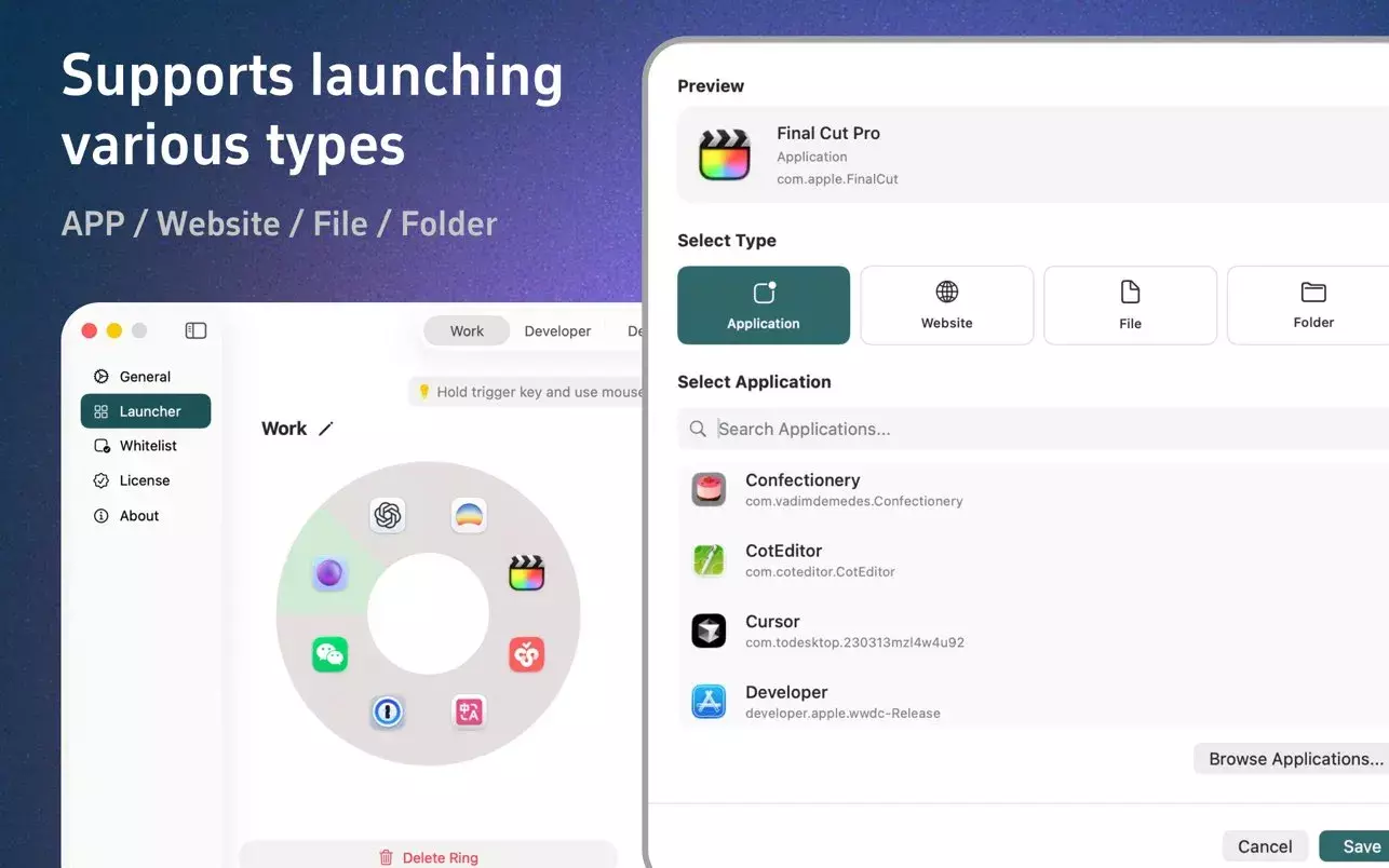 OrbitRing 将是你在 macOS 上的终极生产力工具,让应用启动变得更加高效便捷。