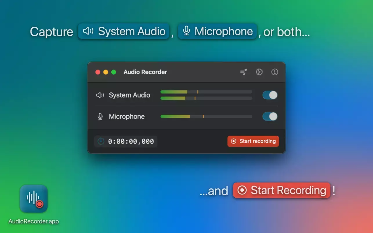 无论您是播客制作者、音乐家,还是需要快速创建个人语音备忘录或录制在线会议的音频,AudioRecorder.app 都是您的理想工具。