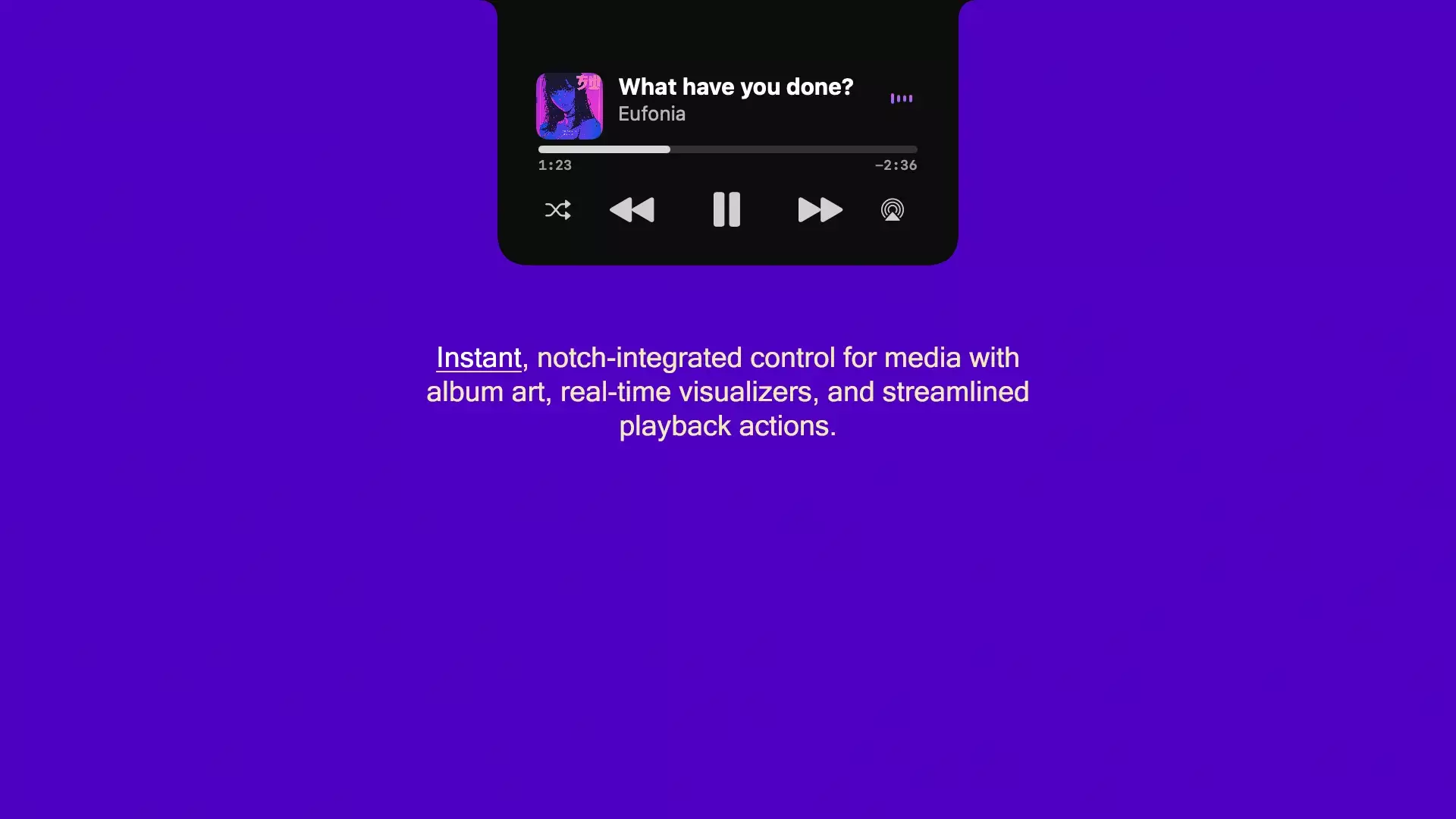 - 媒体控制: 直接从界面的凹槽控制 Apple Music 和 Spotify,带来无缝的音乐体验。