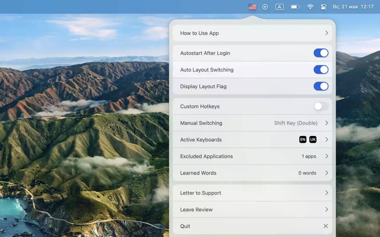 Lang Switcher 是一款智能的键盘布局切换工具,专为 macOS 设计,能够自动检测您正在输入的语言并切换到正确的键盘布局。