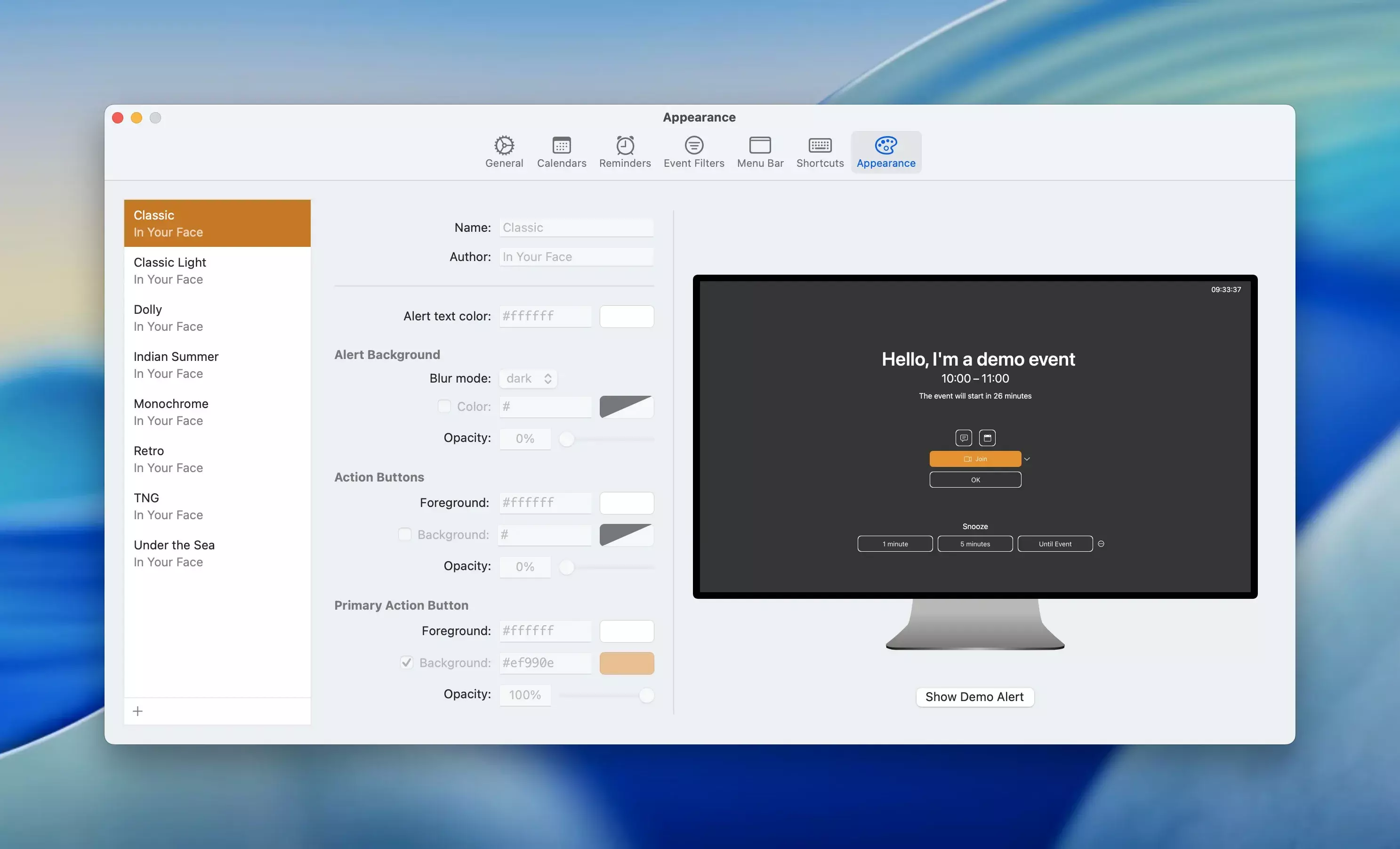 In Your Face 是一款专为 macOS 设计的会议提醒应用,无论是面对面会议还是视频会议,它都会通过全屏提醒的方式,确保用户不会错过任何重要日程。它比如一位亲密的助理,让你的日程安排变得简单而高效。