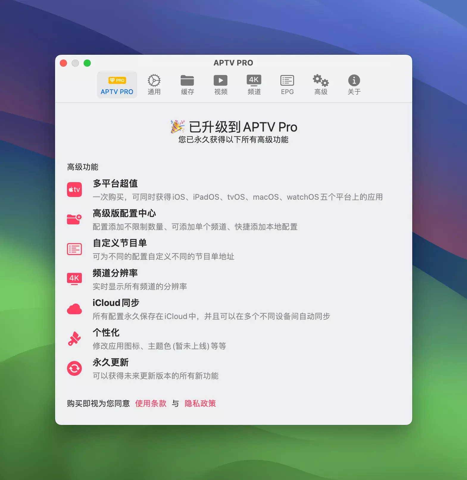 APTV Mac 是一款高颜值的实时预览直播源播放器应用,旨在让用户轻松畅享直播内容。无论您是追剧爱好者、体育迷还是新闻爱好者,APTV都能满足您的需求,支持多种设备,包括iOS(含CarPlay)、iPadOS、tvOS、watchOS和macOS。
