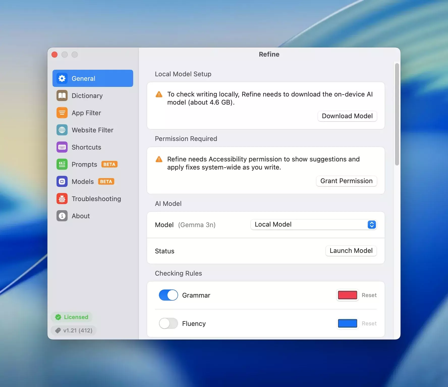 Refine 是一款专为 Mac 用户设计的隐私优先本地 AI 语法检查工具,它通过离线运行的先进 AI 模型提供无缝写作辅助,帮助用户在各种应用中即时完善语法、提升表达,而所有处理均在本地完成,确保数据永不离开设备。