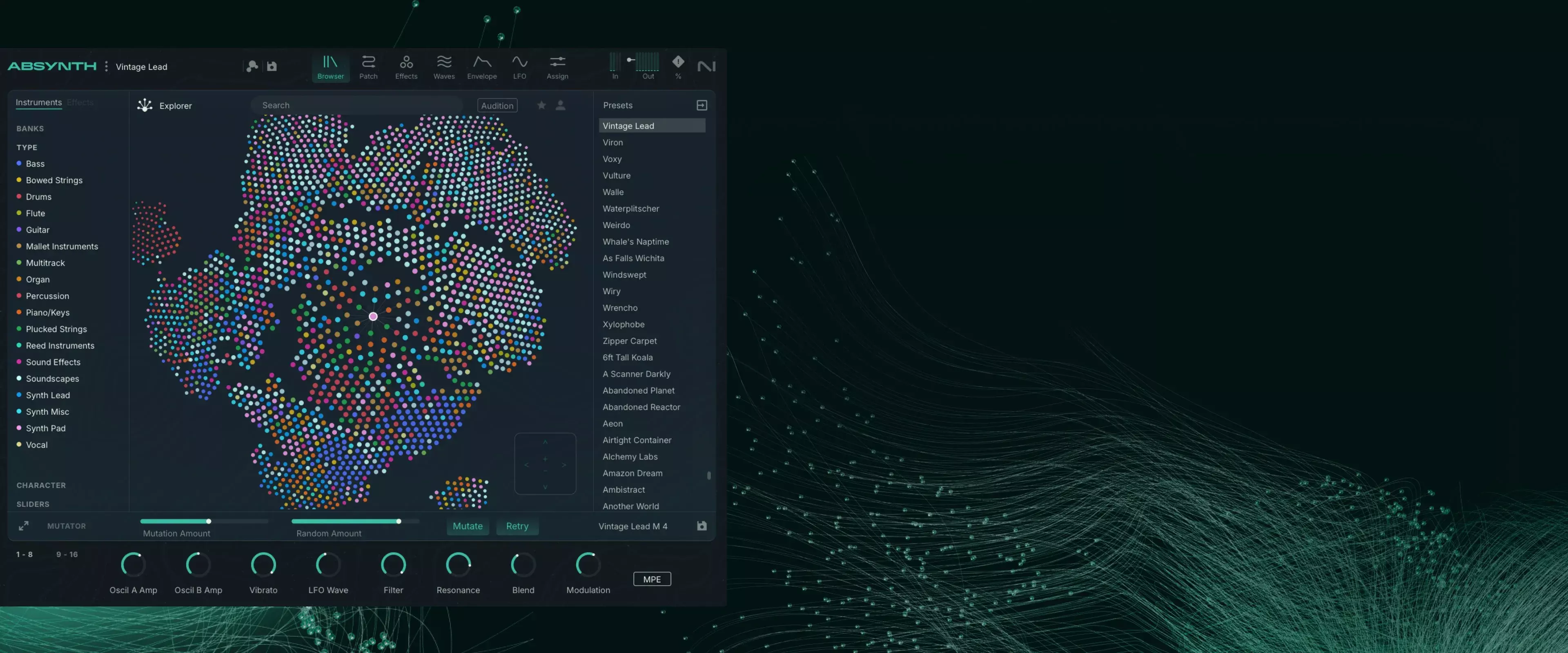 - 预置探索器: 通过音色的视觉关系快速找到所需的声音,而不是一一滚动预置名称。