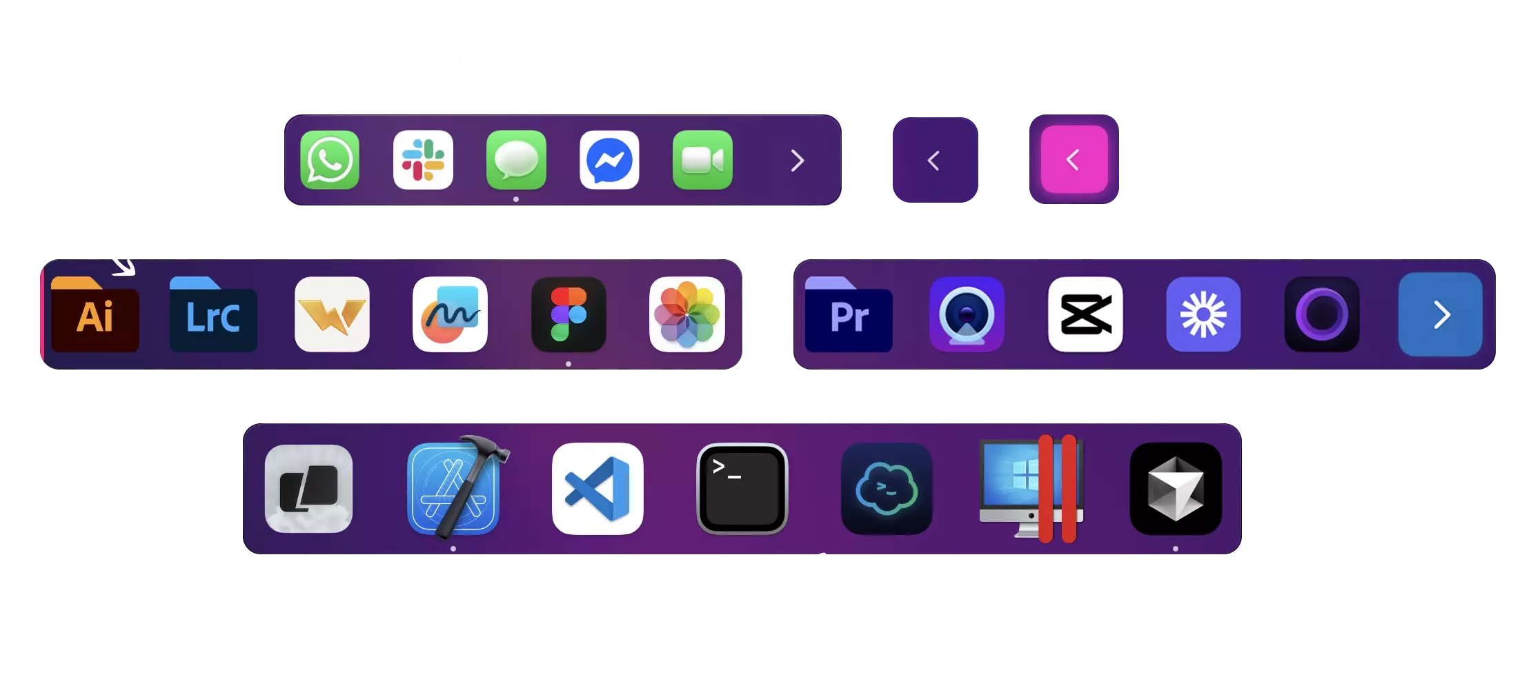 - 多个Dock: 创建无限制的自定义Dock,每个Dock可以配置独立的应用、文件夹、布局和行为。