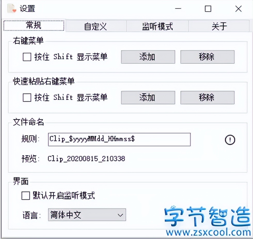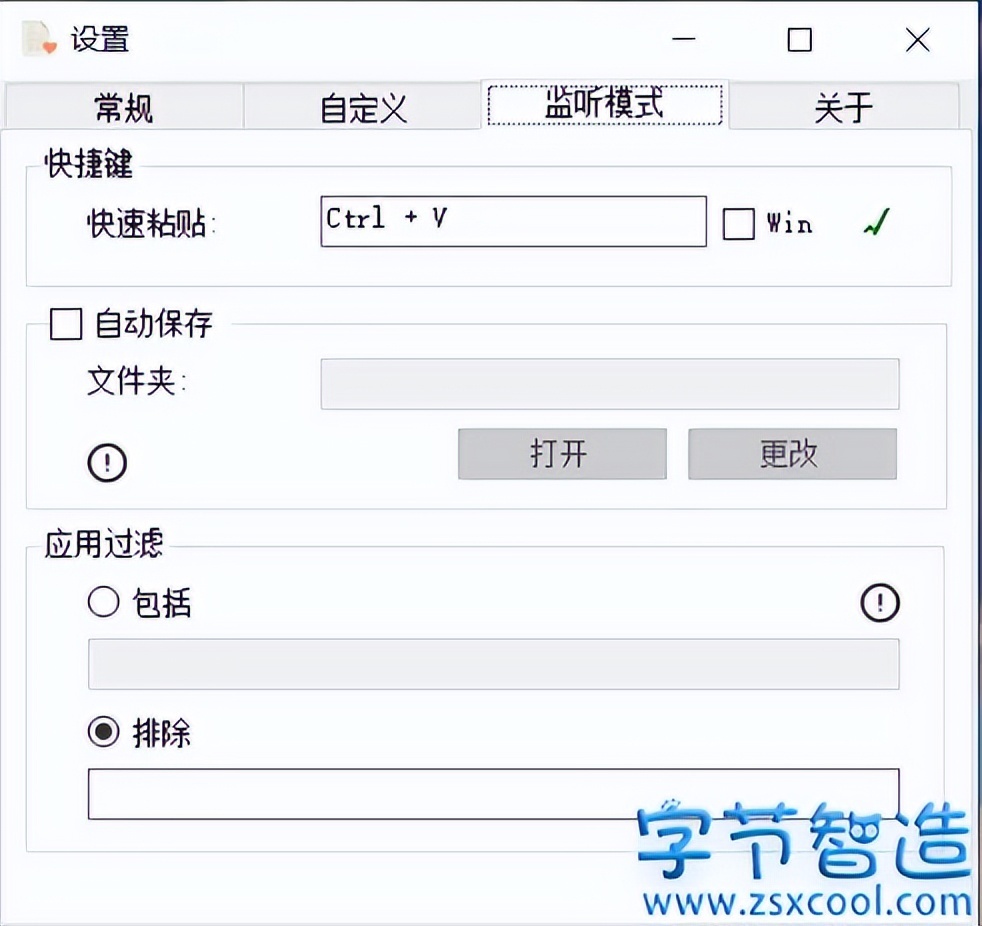 使用监听模式之前,需要提前设定好快捷键以及保存的文件夹。