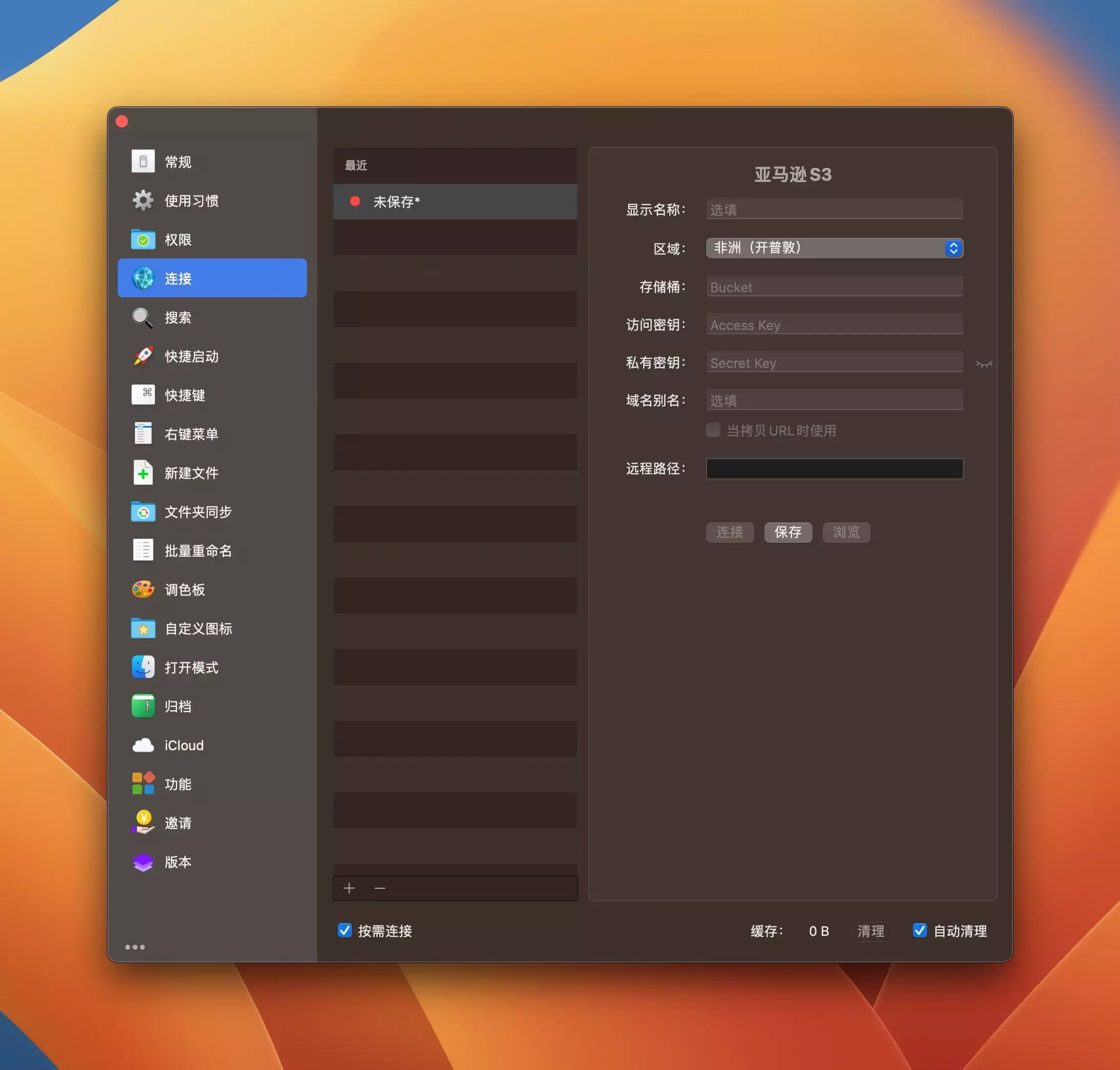 - 连接服务器,支持多种云服务,实现本地与远程之间的文件拖拽。