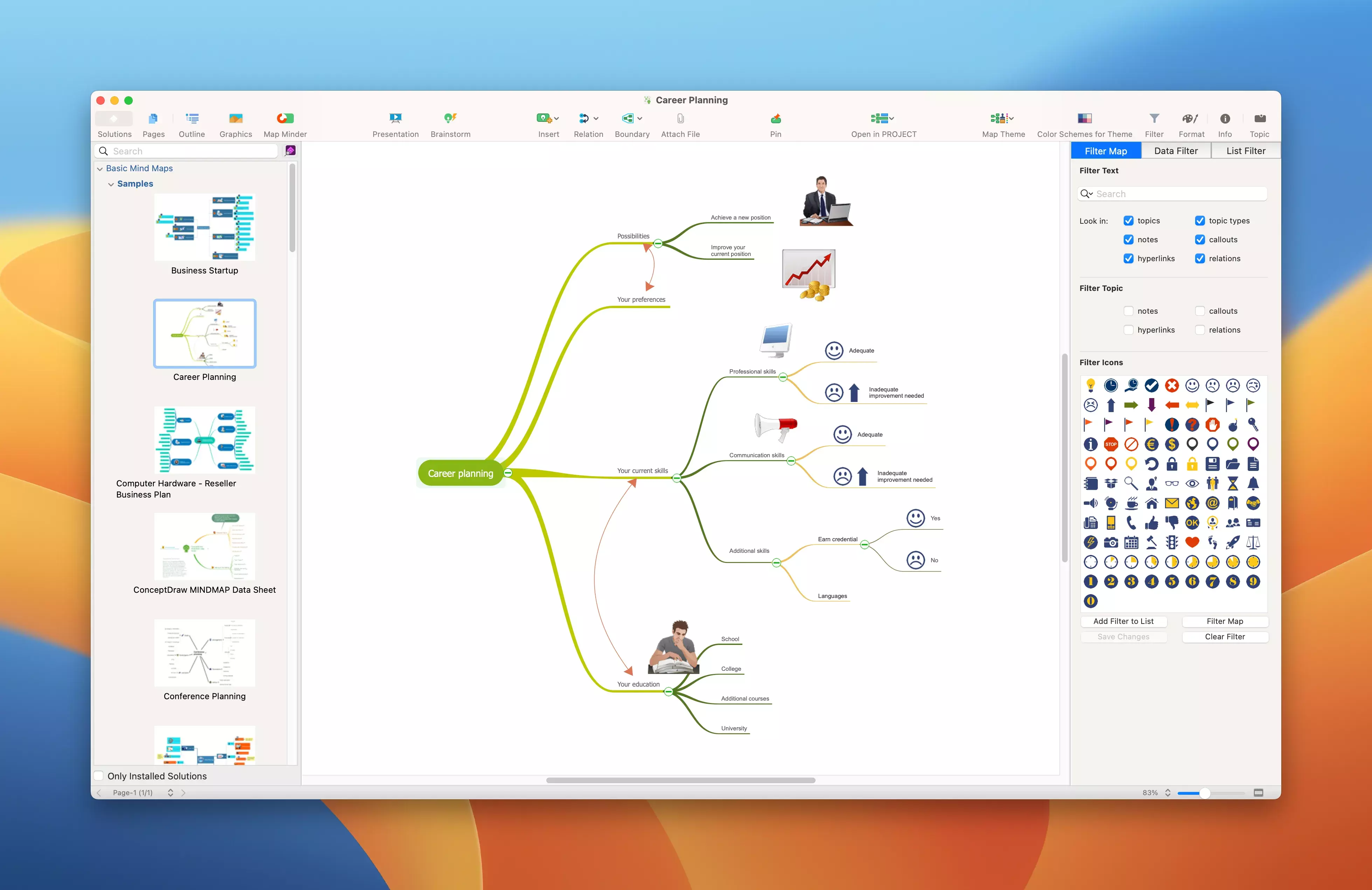 ConceptDraw MINDMAP 提供了一套全面解决方案,以设计和构建节省时间的思维导图,是功能强大的软件,旨在帮助您可视化和组织您的思考。