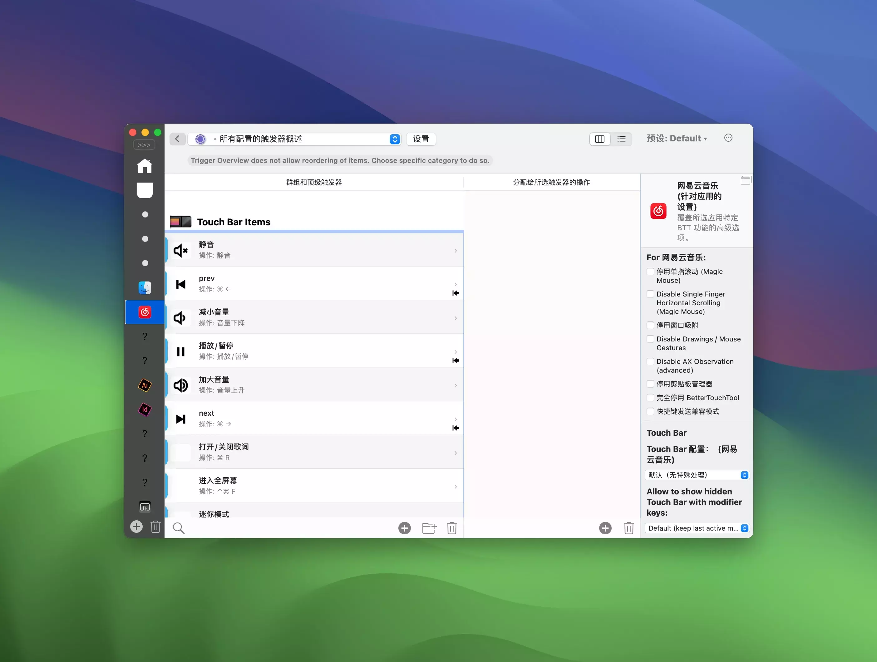 BetterTouchTool 让你能够重新塑造你一直想要的Touch Bar。从精确编辑现有设置,到创建新的功能按钮,甚至定义元素之间的间距,你的Touch Bar将能够包含完美补充你工作方式的独特触发器。