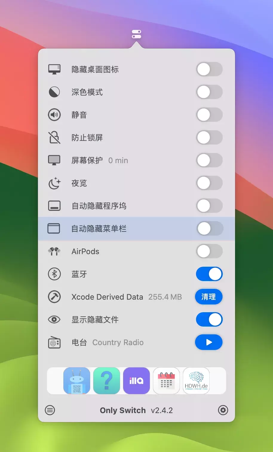 OnlySwitch for Mac 开源软件 – 系统开关快捷切换
