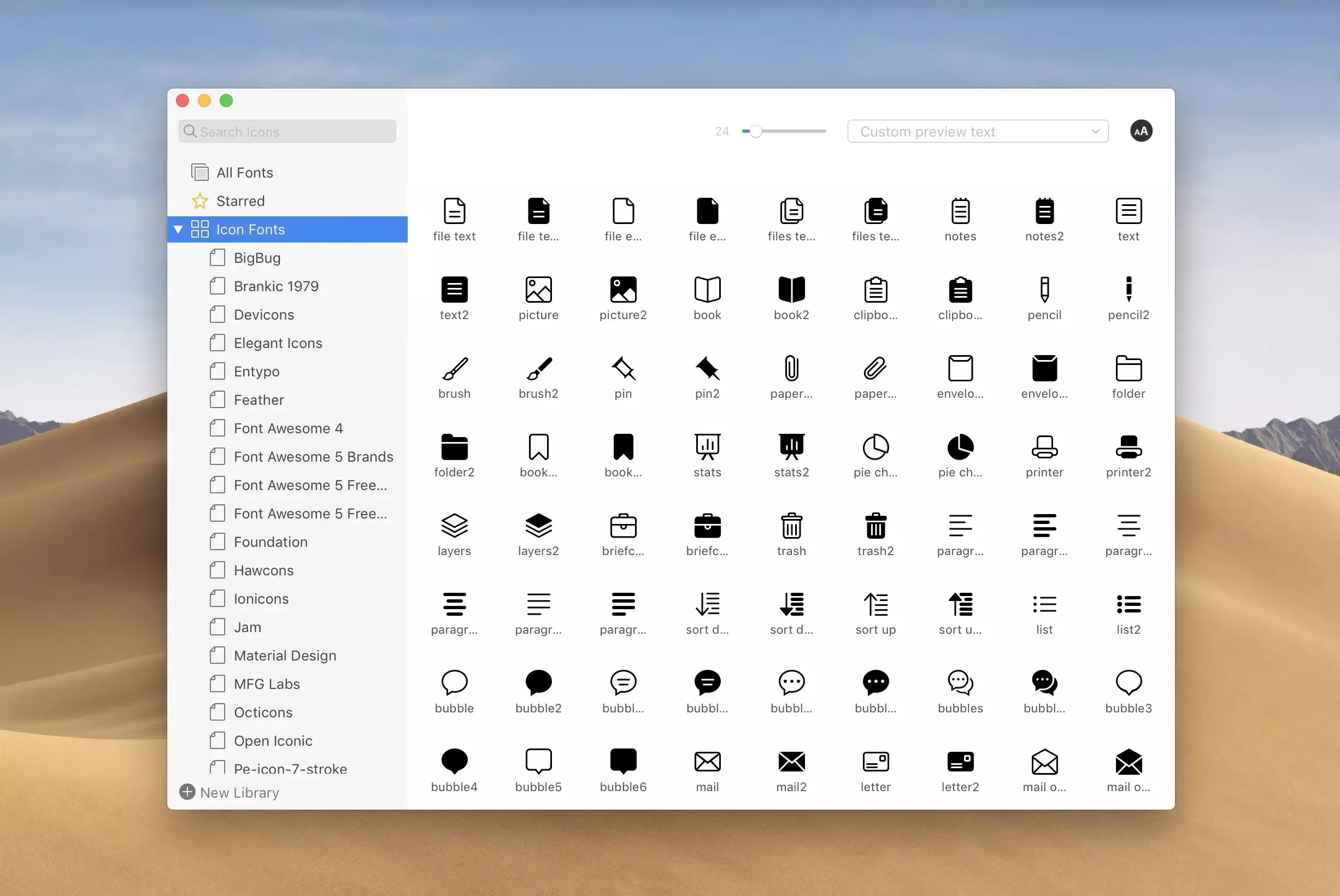 - 图标字体:轻松将数千个美丽的免费图标拖放到您选择的任何设计应用中。