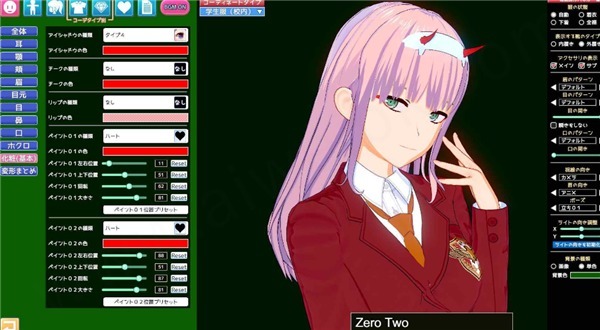 2、与i社的前几部作品不同,这部作品完全以动漫画风为主,但同样继承了优秀的捏人系统,其中提供了大量的角色身体特征、服装等,并且其中大部分的参数如:脸部、身体各部分的角度、大小、特征;衣服的颜色、花纹、样式;小饰品的大小、位置等都是可以调整的。