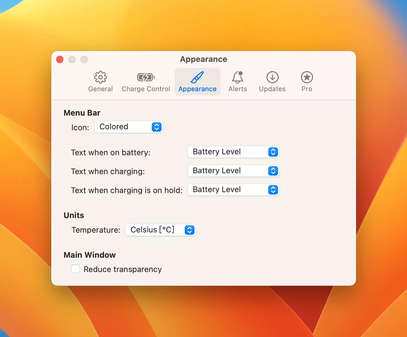 Energizer非常可配置,可以轻松根据个人需求进行定制。例如,您可以自定义应用程序在菜单栏中的外观,或指定要收到通知的充电事件。如果需要,Energizer还可以确保当您的MacBook插入长时间后自动将电池放电至一定上限以防止电池磨损。