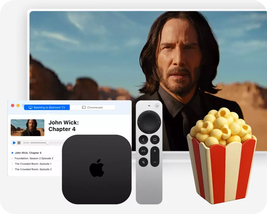 Beamer 是理想的选择,适合那些希望将 Mac 上的电影和视频轻松流式传输到更大屏幕的用户,让家庭影院体验变得简单而愉快。
