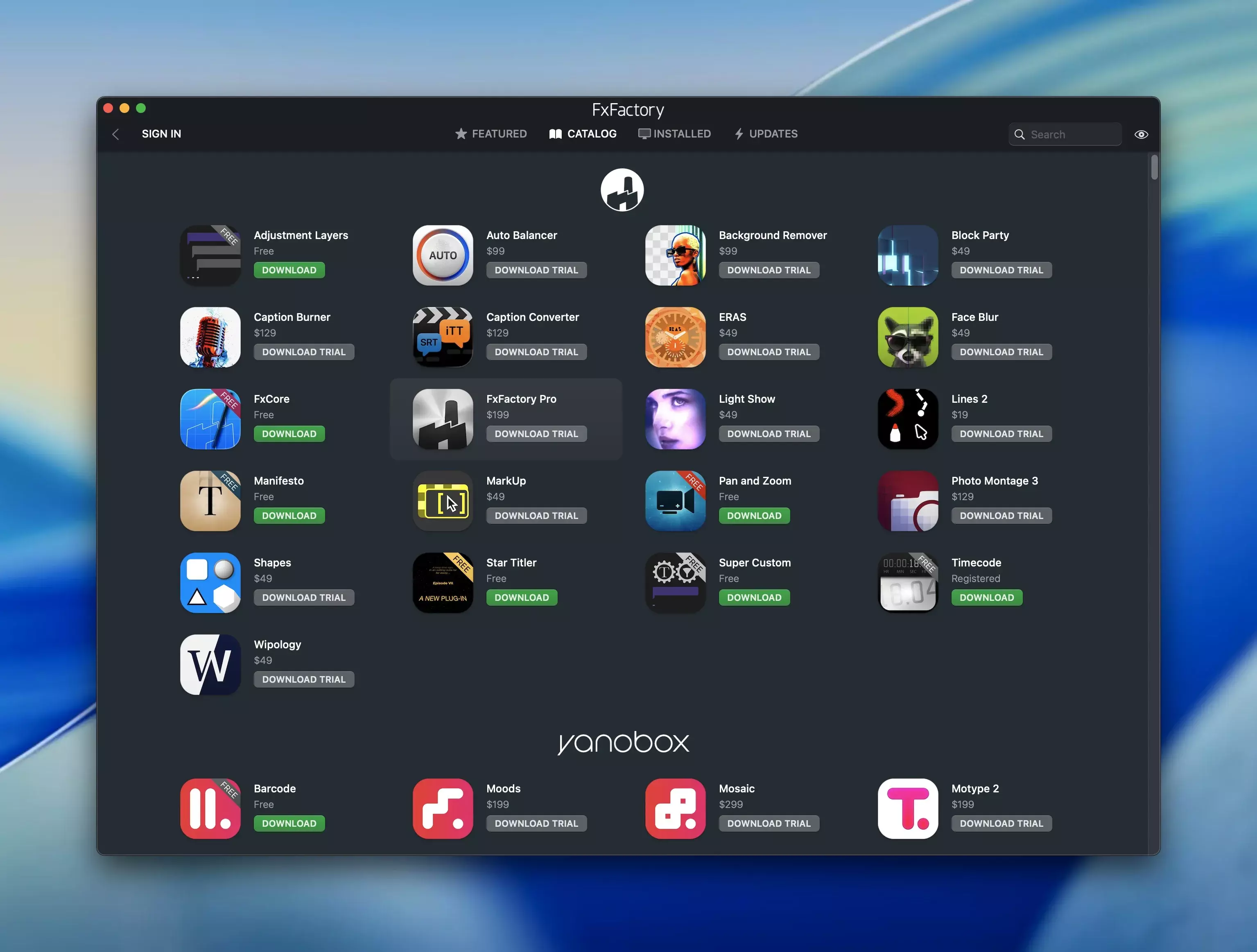 - 免费产品使用: FxFactory 允许用户使用某些免费产品,无需购买,并为商业产品的购买和注册提供支持。