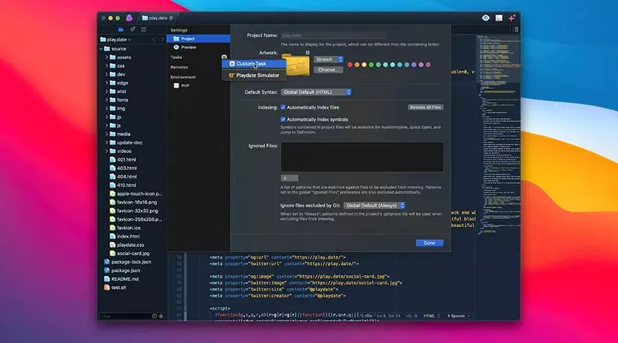 - Nova不仅帮助您编写代码,还帮助您运行代码。您可以为项目轻松创建构建和运行任务。我们在Coda中没有这些功能,但现在我们有了。它们是可以通过工具栏按钮或键盘快捷键随时触发的自定义脚本。