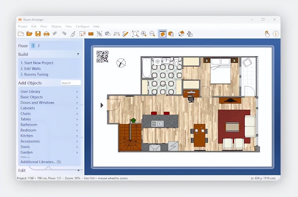 - 易于使用: Room Arranger 软件小巧而紧凑,用户在掌握基本操作后,可以轻松地实现更复杂的设计。