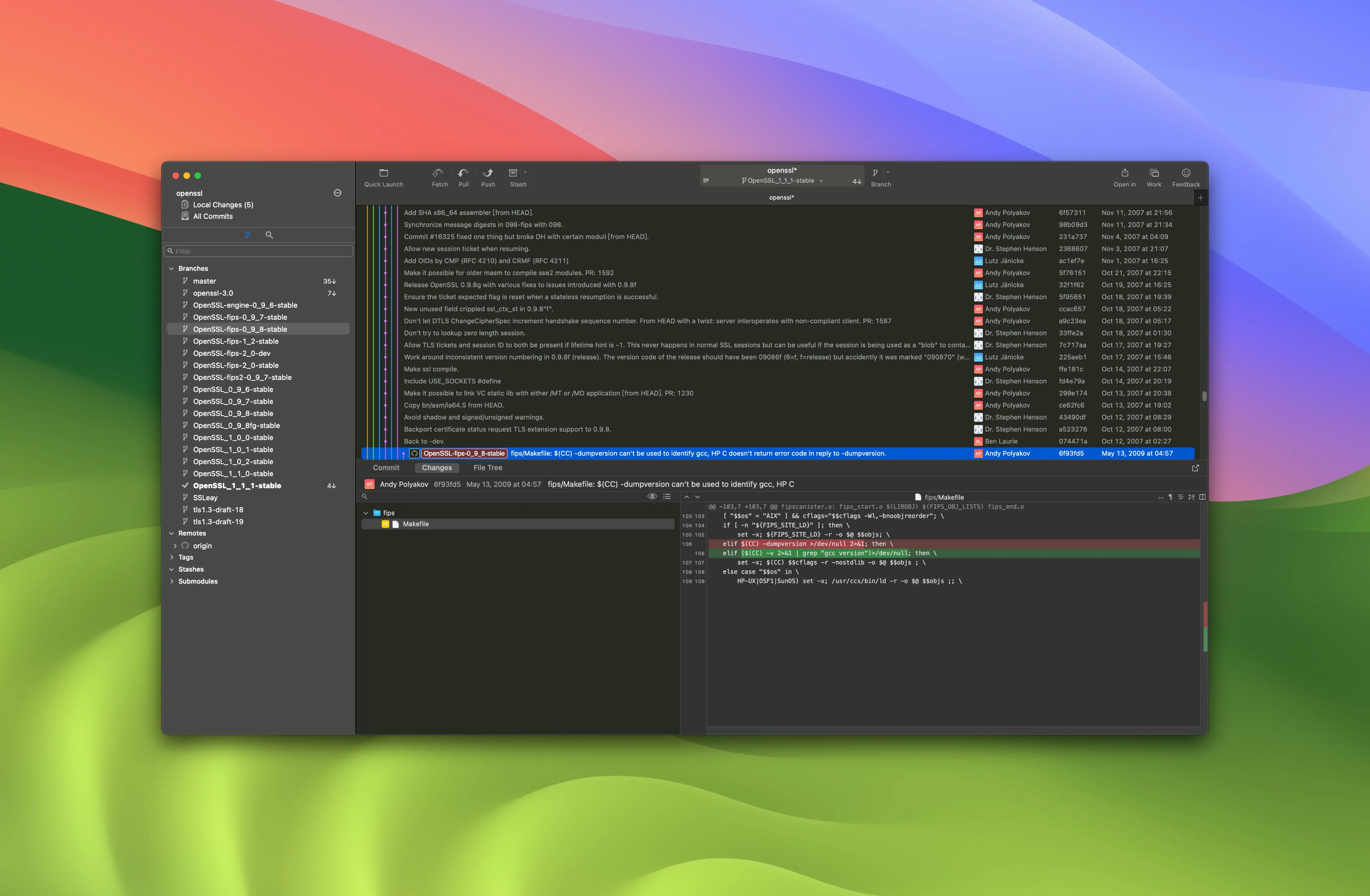 Fork 的差异查看器提供了清晰的视图,快速察觉你的源代码中的变化。