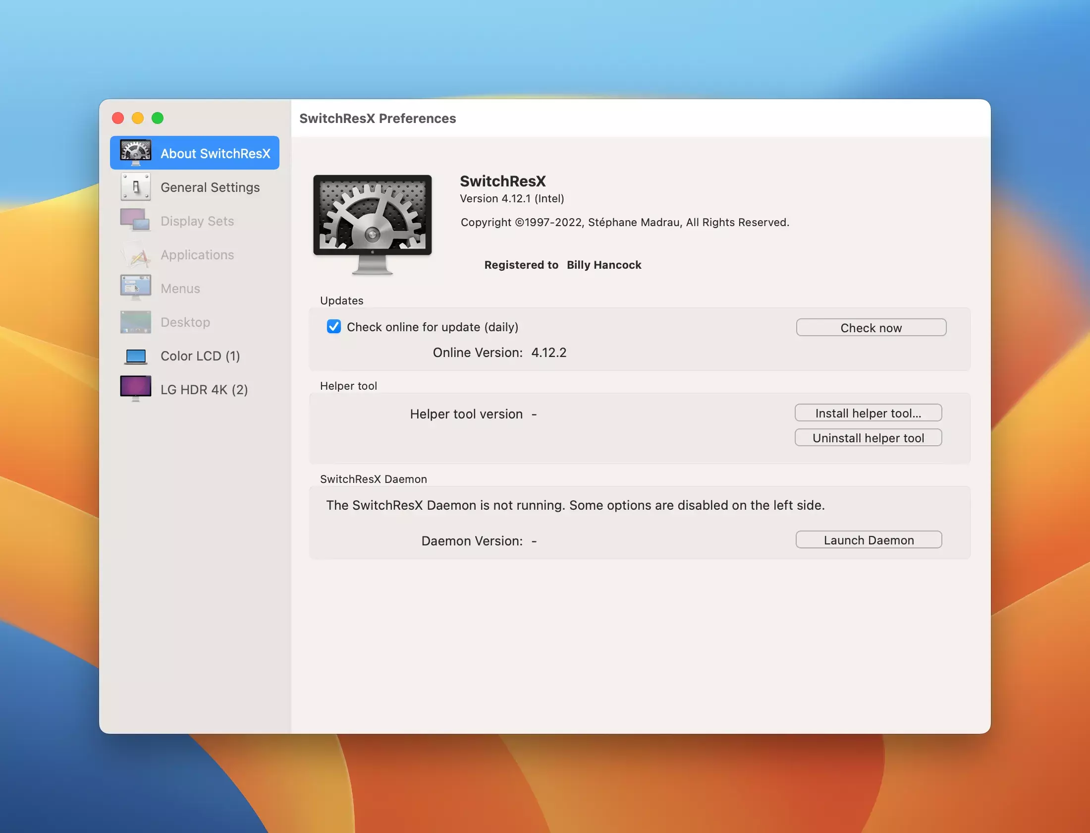 - 偏好设置面板: 安装后,SwitchResX会在偏好设置面板中运行,并可像其他助手一样激活。它会在一个单独的窗口中打开,提供比苹果内置显示器偏好设置更丰富的功能。