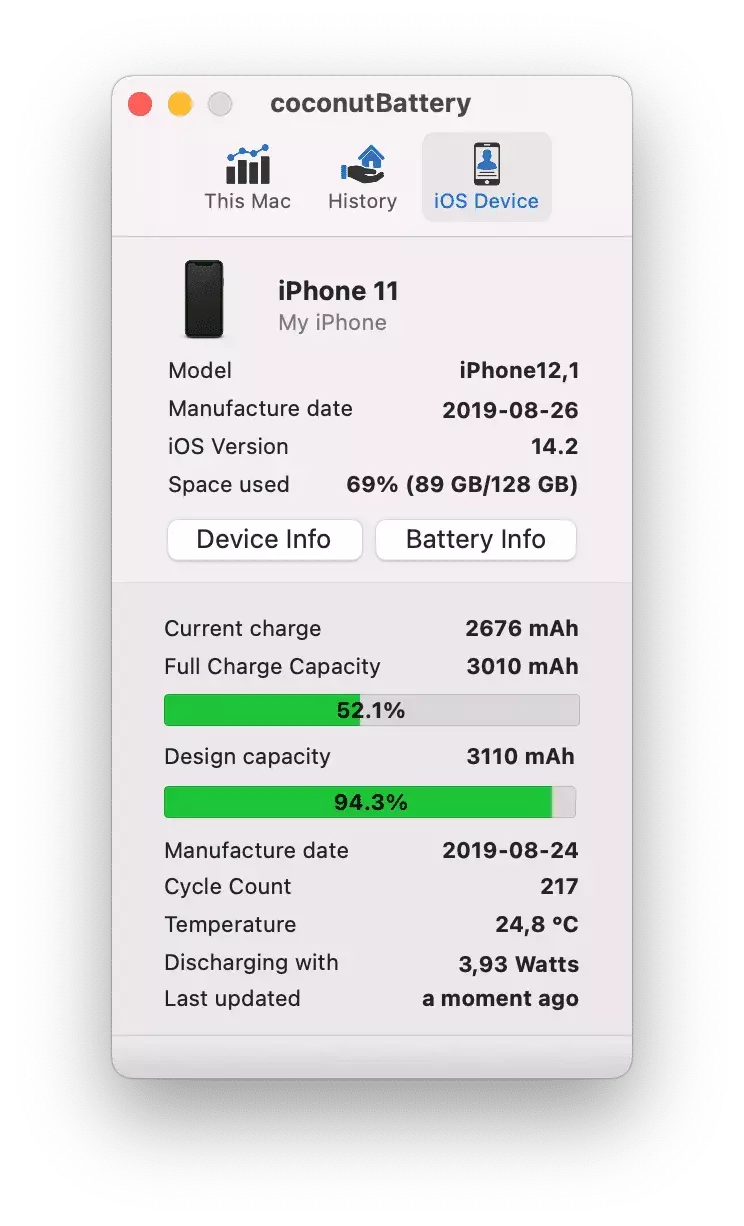 coconutBattery 为用户提供了强大的电池监测工具,帮助用户维护设备的电池健康,延长电池寿命。